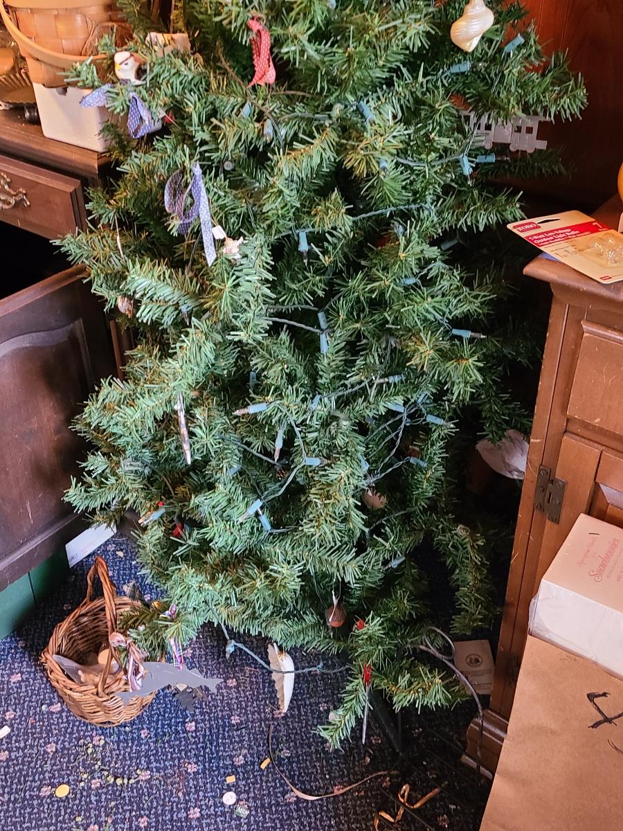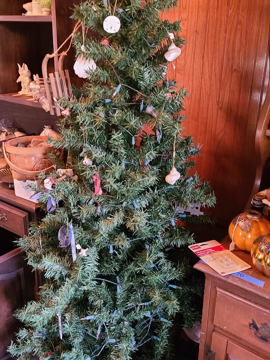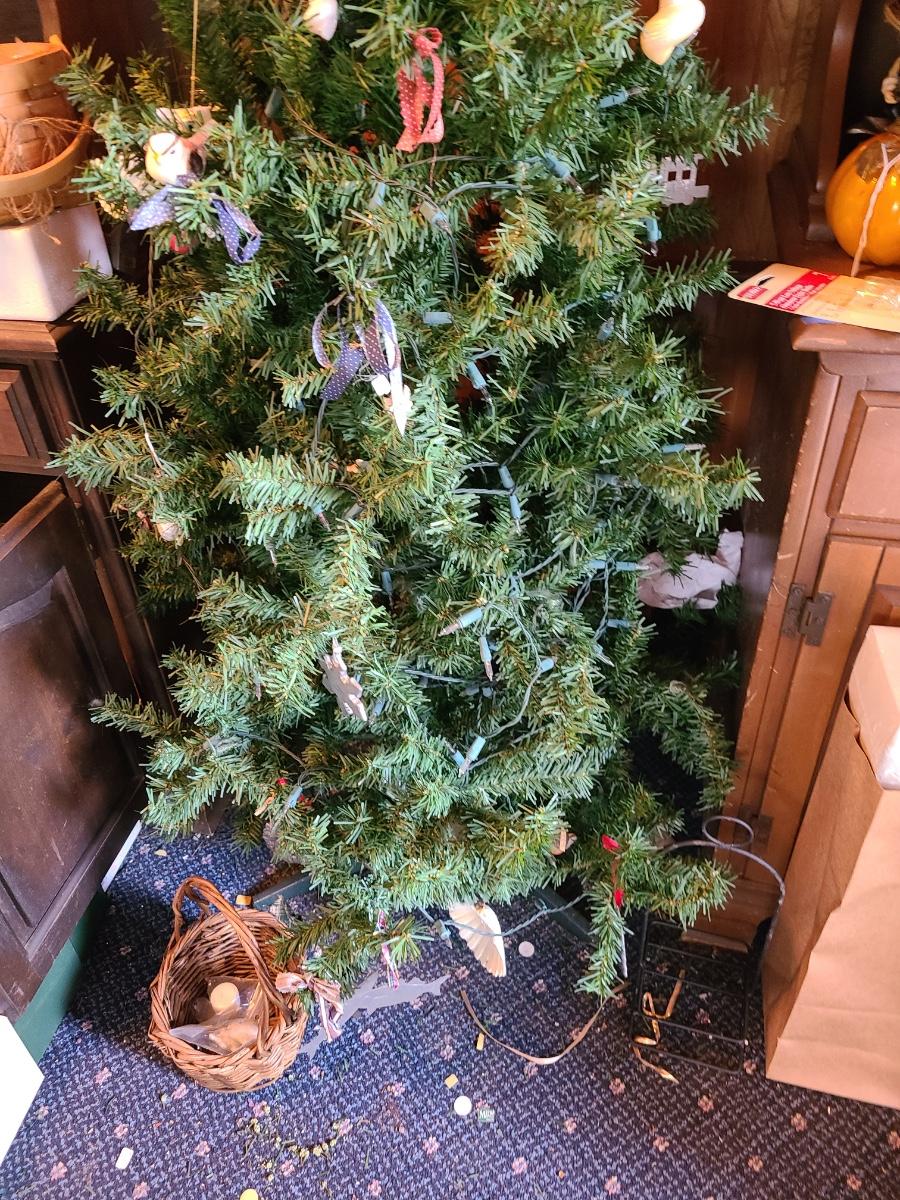 This is a thinner tree used in store to display ornaments. Comes with some ornaments. Not sure if lights work. Please see all pictures as they are the best representation of the items. The pictures show condition, measurements if taken, and what is included in the lot. Due to the large amount that we photograph and the time frame, we are not always able to take measurements. All items unless noted, are pre-owned and have been used. If you purchased furniture, you must bring help. We do not allow one person to carry large furniture out on their own. Bring help, tools and a truck for the safety of our client’s homes, and your personal safety. Any damages that result to the property including walls, and floors due to moving of the furniture will be charged to the buyer. Company policy. Thank you.