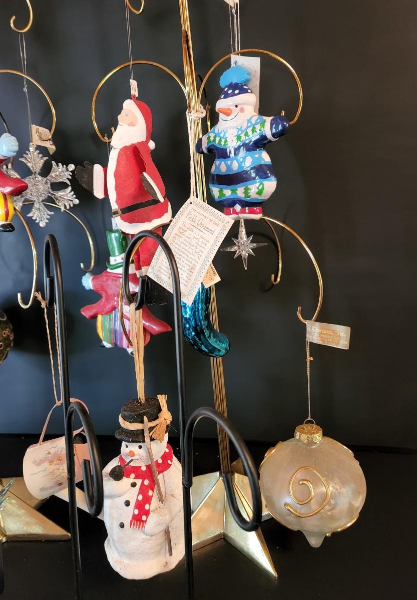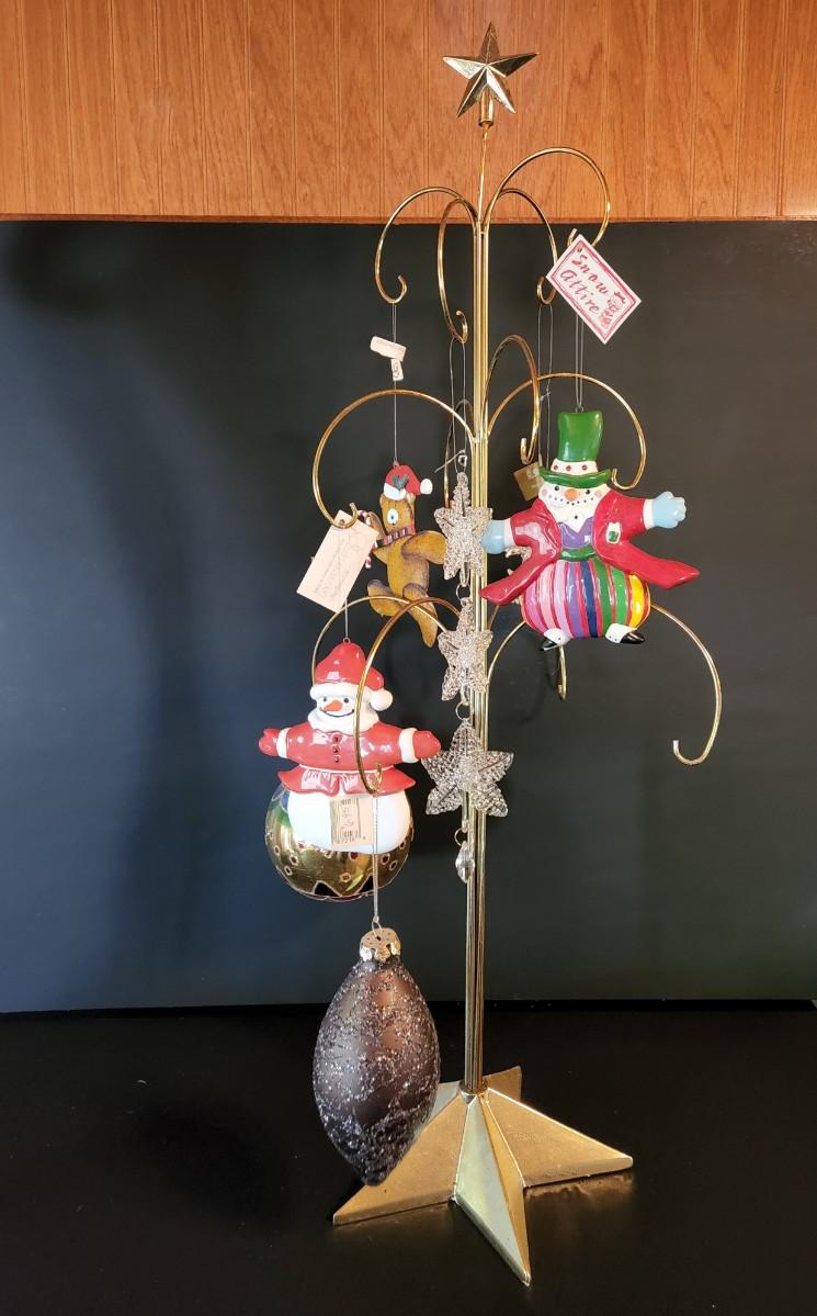 Two gold toned ornament holders approx. 12in. and the other is wood. Also included is a variety of ornaments including Dept. 56 snowmen. Please see all pictures as they are the best representation of the items. The pictures show condition, measurements if taken, and what is included in the lot. Due to the large amount that we photograph and the time frame, we are not always able to take measurements. All items unless noted, are pre-owned and have been used. If you purchased furniture, you must bring help. We do not allow one person to carry large furniture out on their own. Bring help, tools and a truck for the safety of our client’s homes, and your personal safety. Any damages that result to the property including walls, and floors due to moving of the furniture will be charged to the buyer. Company policy. Thank you.
