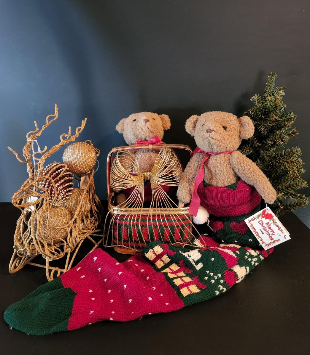 Holiday decor includes: Two Ganz bears with stockings. They have been in a store that was closed, so they may be dusty and show wear. A deer basket with assorted ornaments, festive basket, gold bow, and a small tree. Please see all pictures as they are the best representation of the items. The pictures show condition, measurements if taken, and what is included in the lot. Due to the large amount that we photograph and the time frame, we are not always able to take measurements. All items unless noted, are pre-owned and have been used. If you purchased furniture, you must bring help. We do not allow one person to carry large furniture out on their own. Bring help, tools and a truck for the safety of our client’s homes, and your personal safety. Any damages that result to the property including walls, and floors due to moving of the furniture will be charged to the buyer. Company policy. Thank you.
