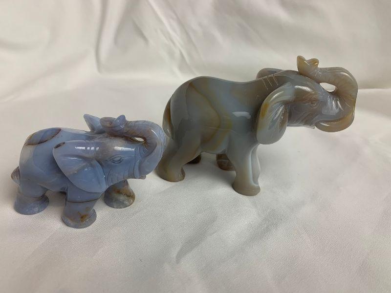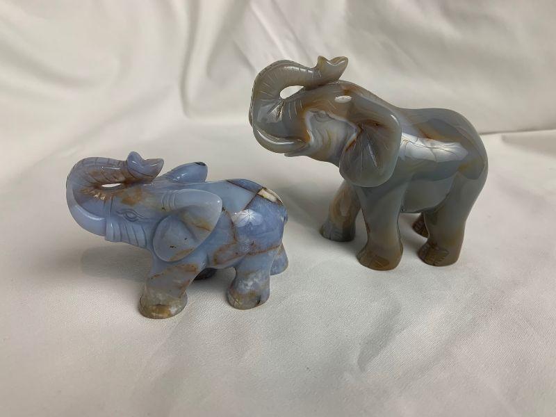 2 Elephants made of Jade or other stone 1. 31/2" h x 4" w and 2. 2 1/2" h x 3" w