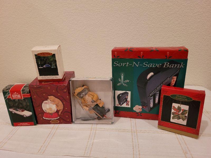 Lot 708: Assorted Christmas Ornaments + Coin Organizer Gift