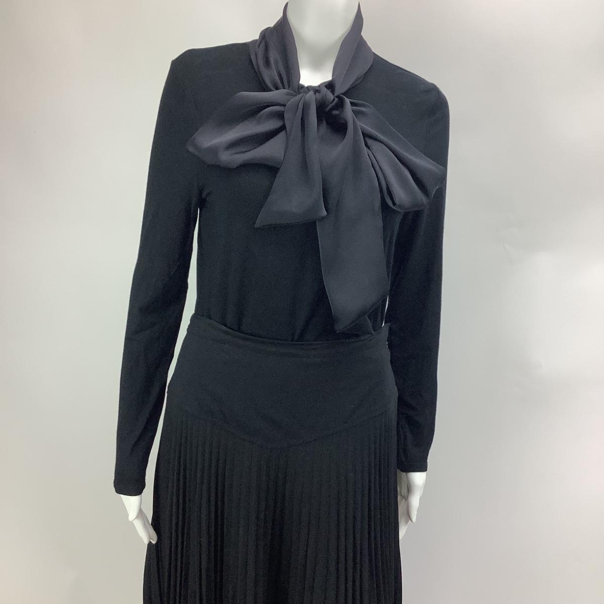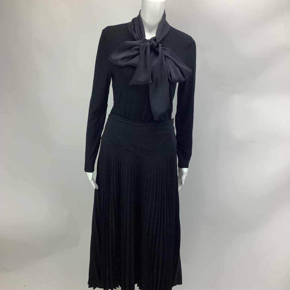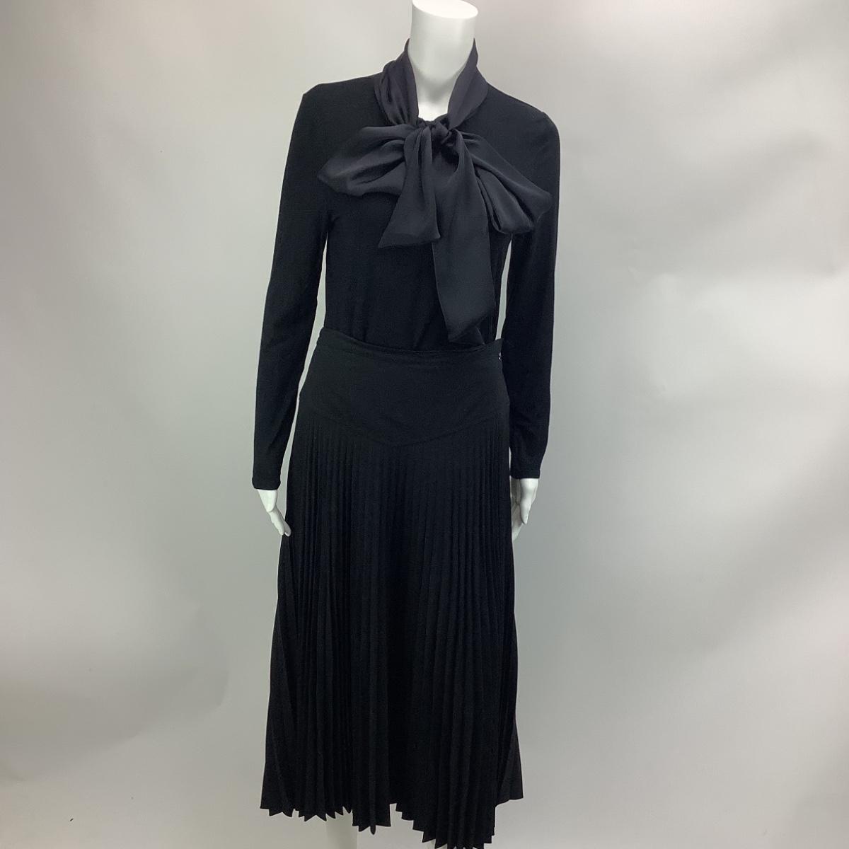 Lot 708 Ralph Lauren Black Blouse with Silky Tie & Ralph Lauren Black Pleated Skirt
