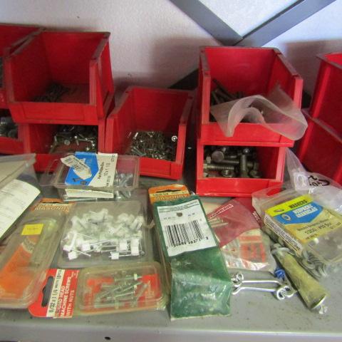 VARIETY OF HARDWARE AND PLASTIC ORGANIZING BINS