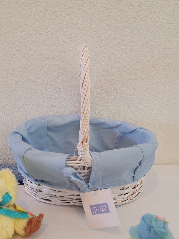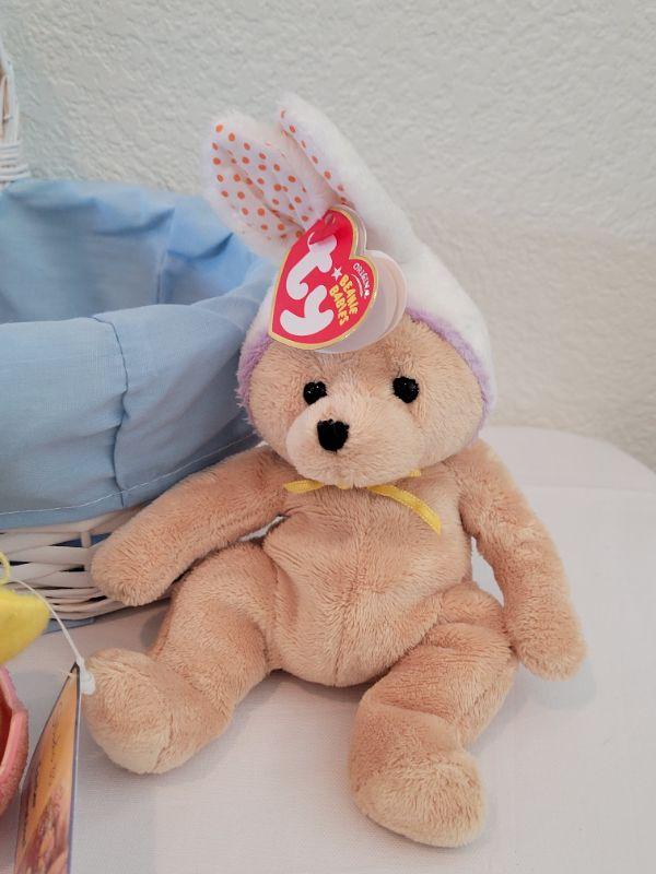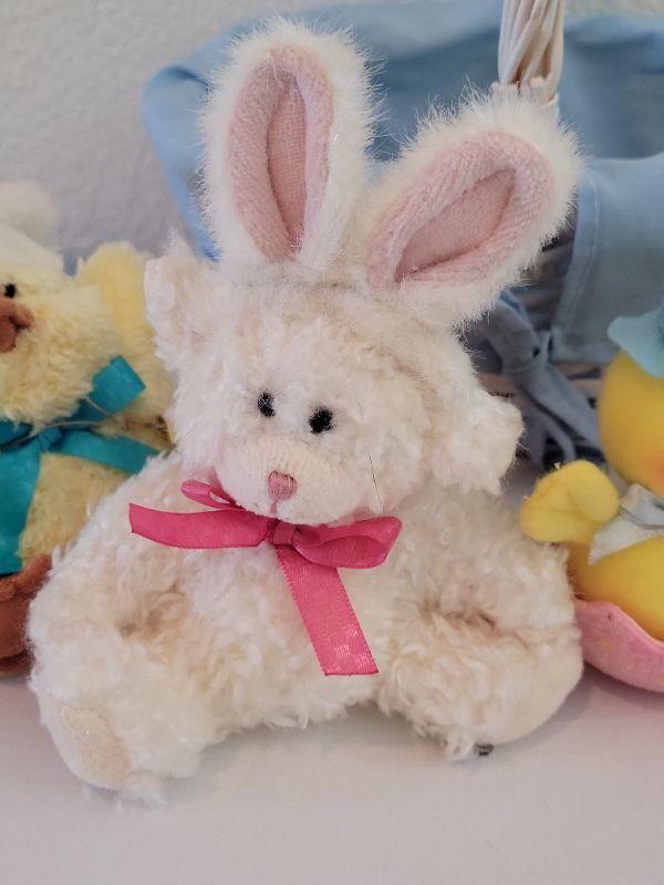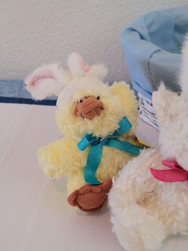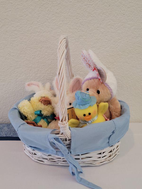Lot 71: New Small Easter Basket with Mini Plushies and Ty Beanie Bear in Bunny Costumes
