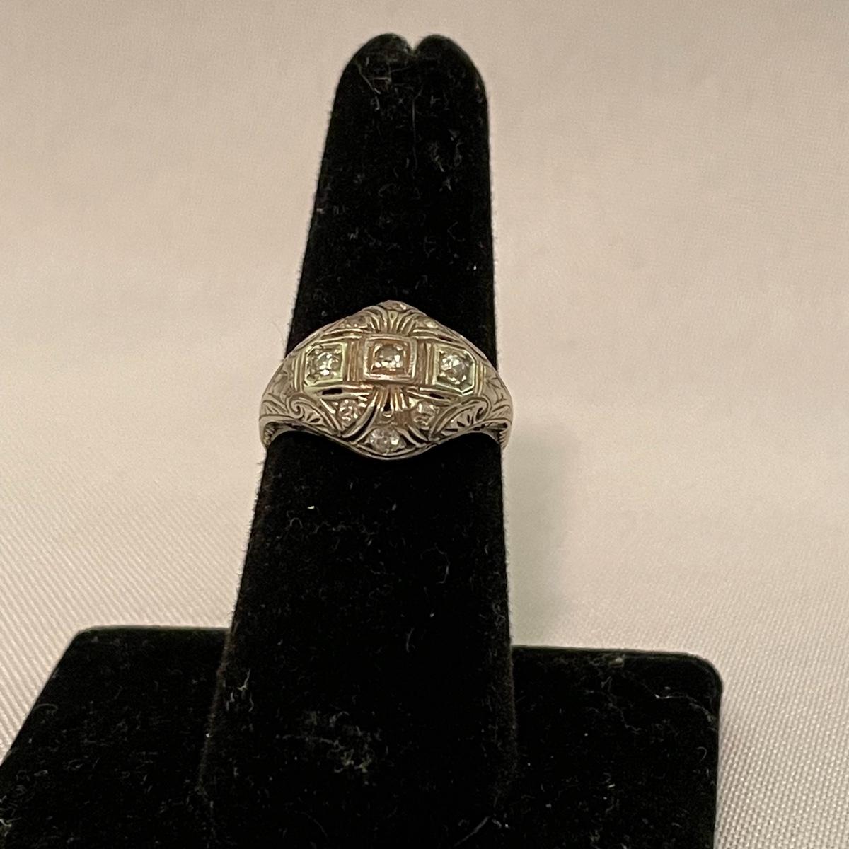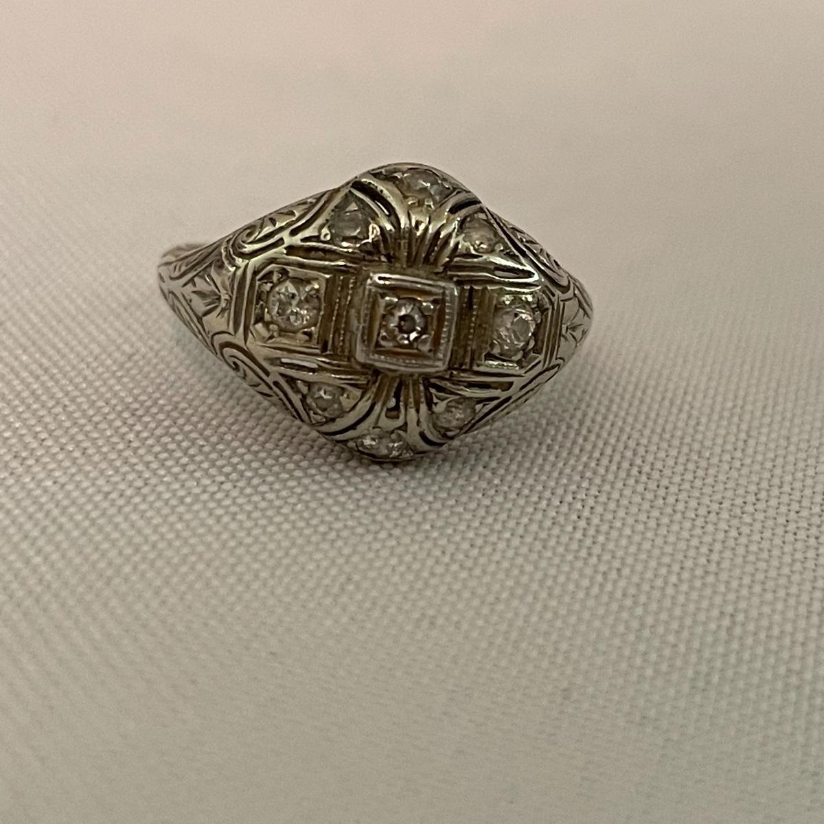 Beautiful 18k band with three bigger diamonds in the center and six smaller diamonds/moissanite. Diamonds were tested and confirmed. See images. Shipping available.