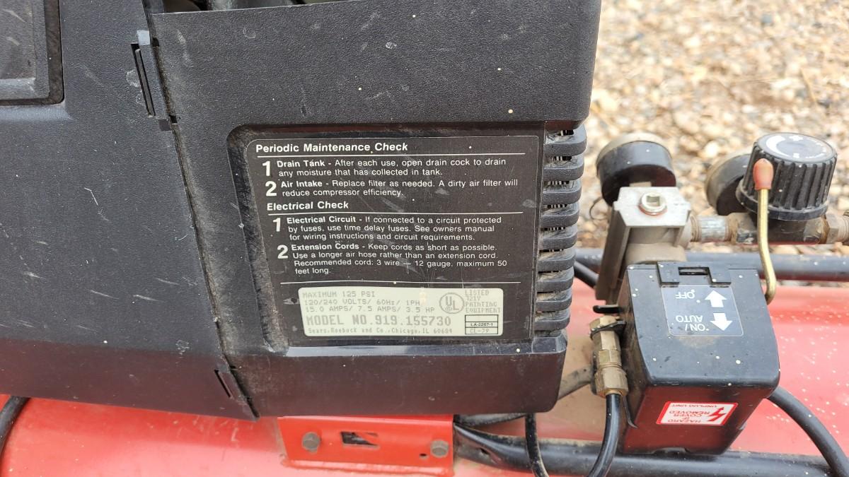 Lot 71: Vintage CRAFTSMAN 90 PSI Portable Air Compressor Tank