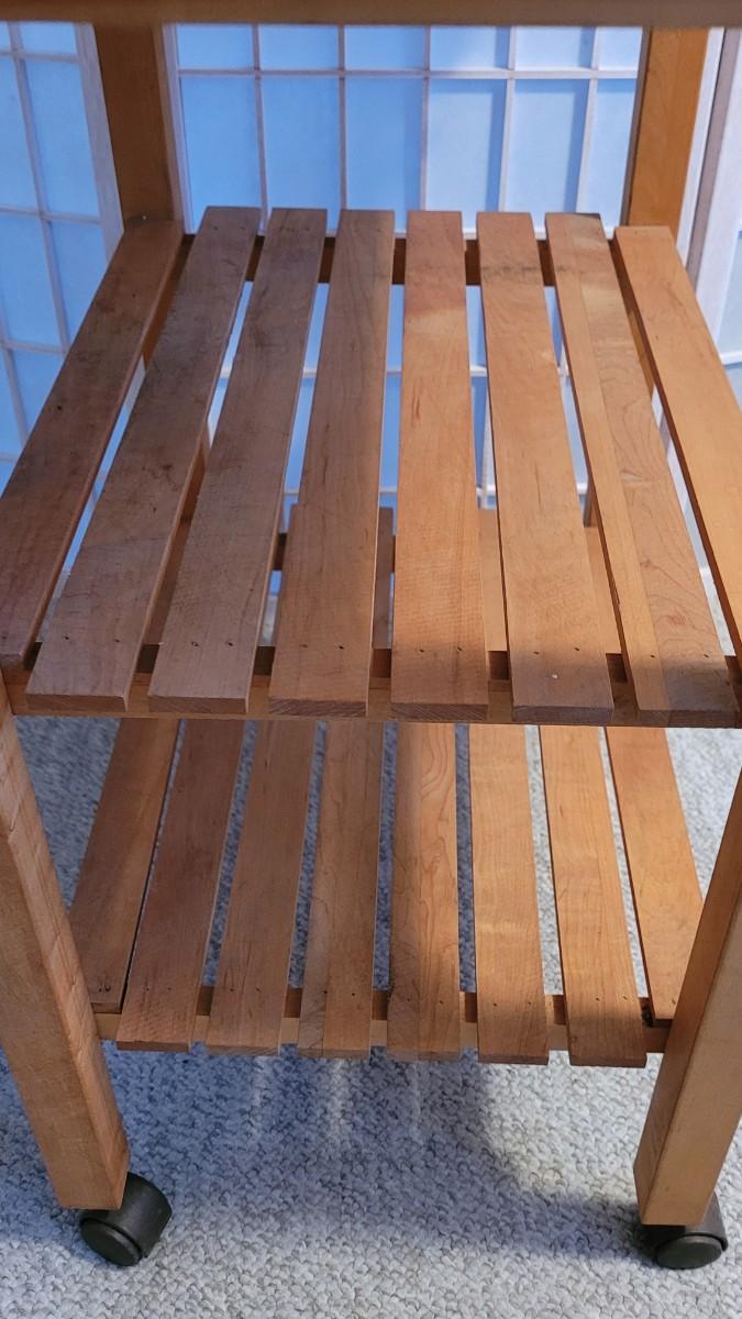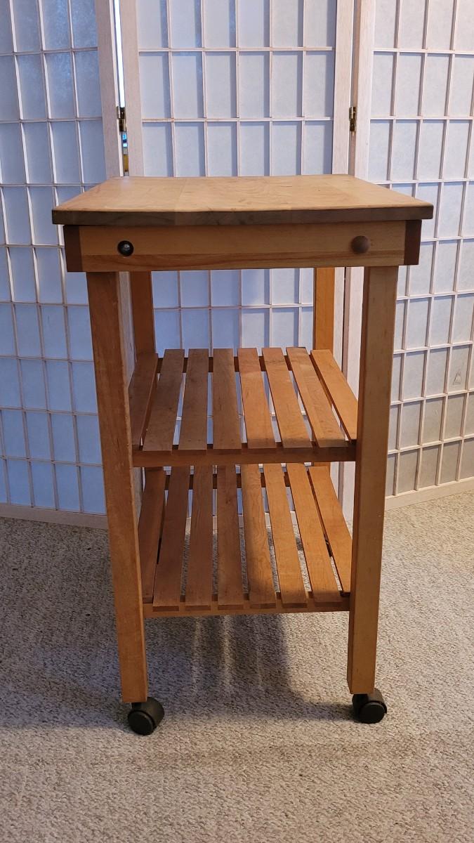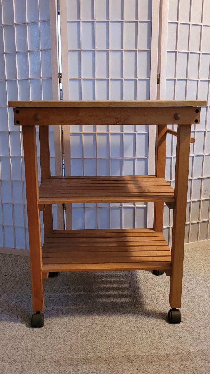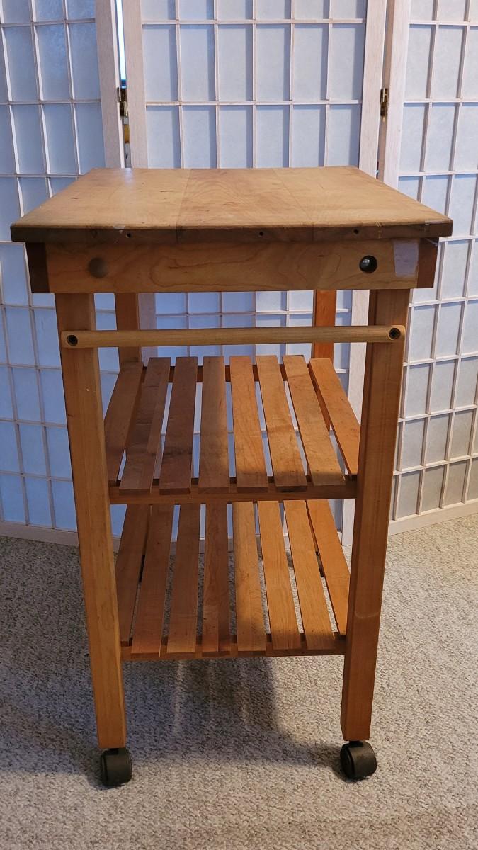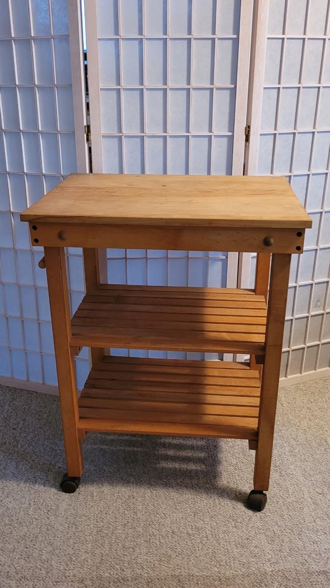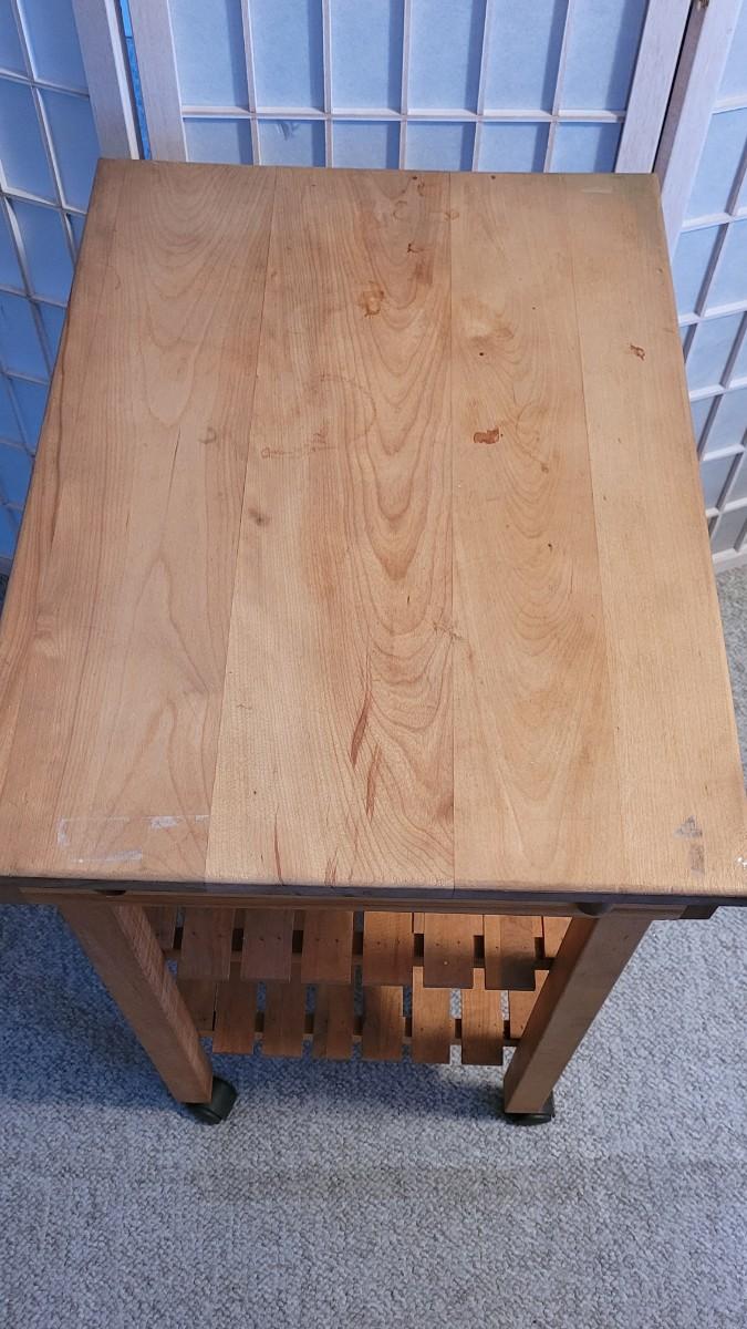 Kitchen, art, or garden cart. So many uses! Has some discoloration on the top.