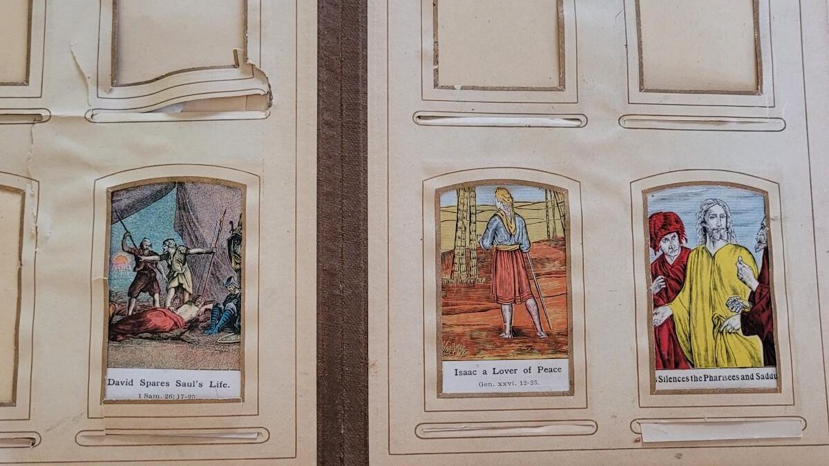 Has some vintage magazine or newspaper religious ephemera cut outs