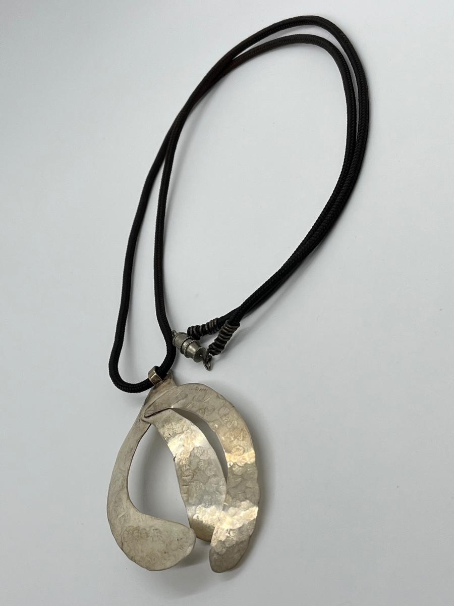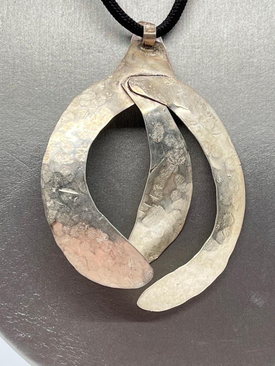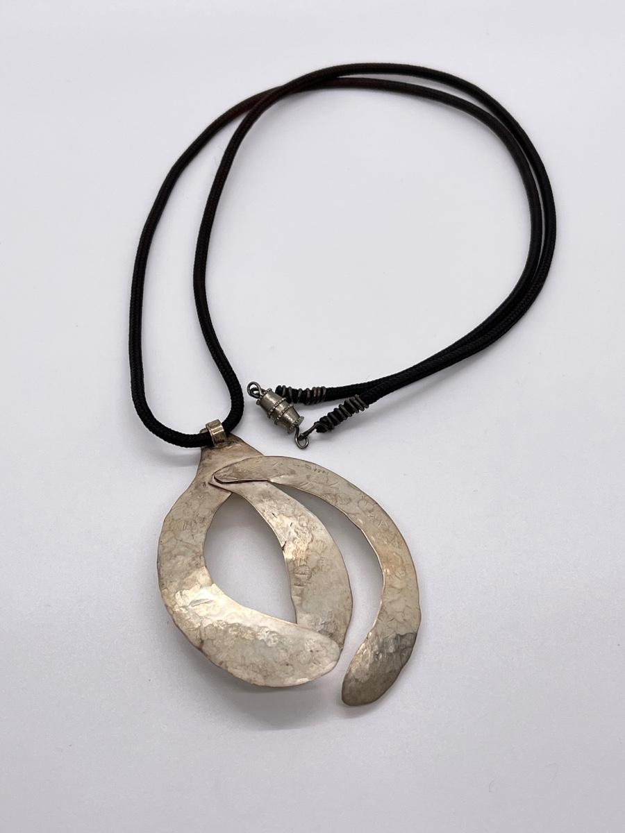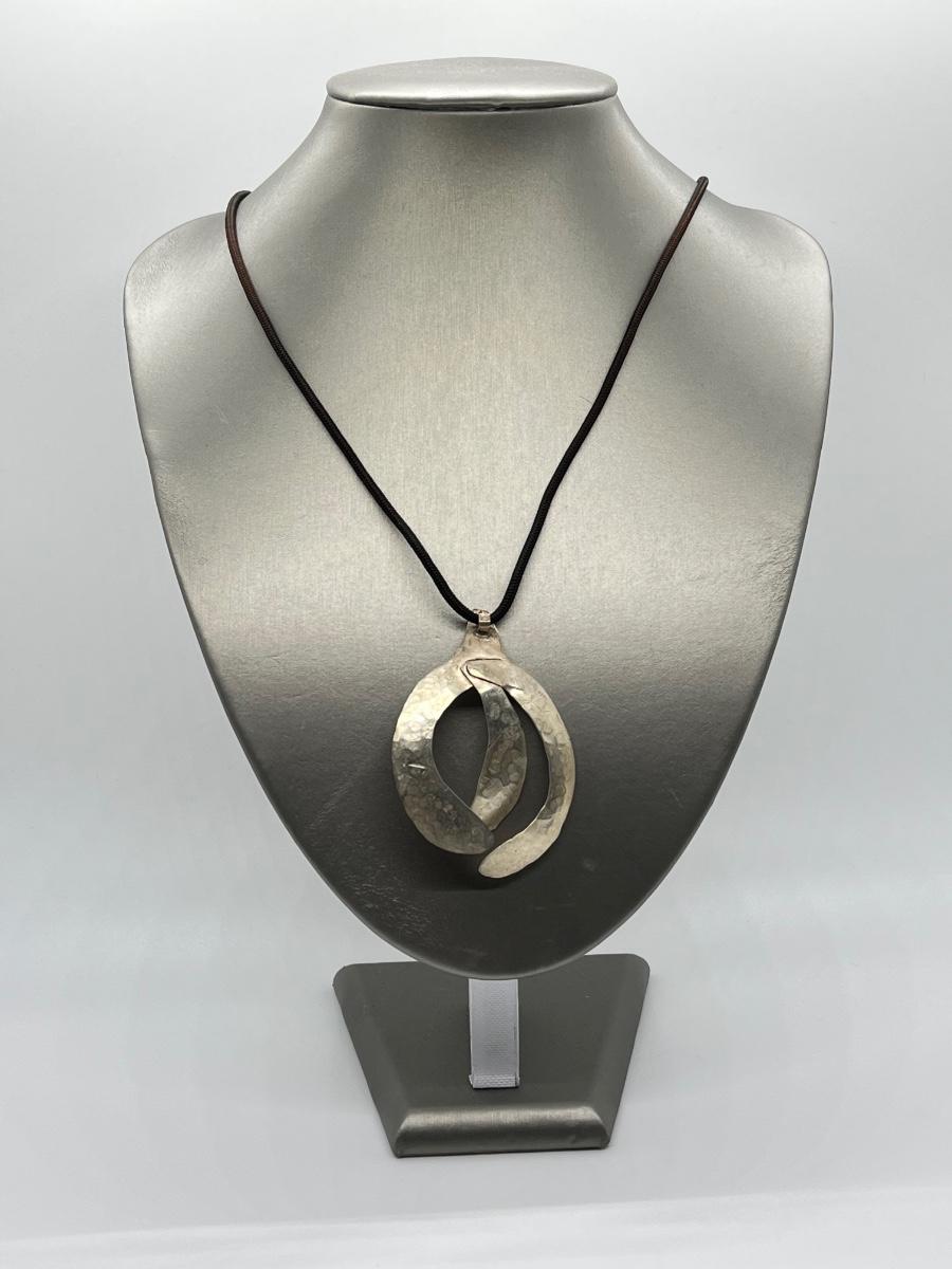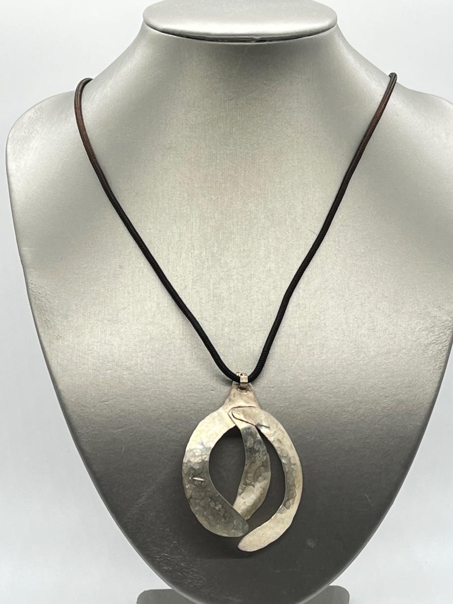 LOT 71: Handcrafted Hammered Silver Pendant on 20" Cord Necklace