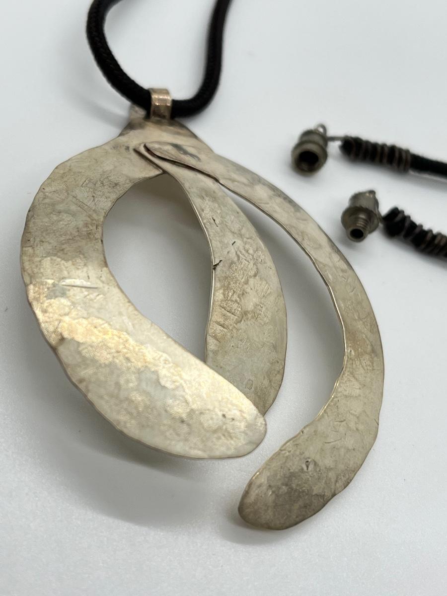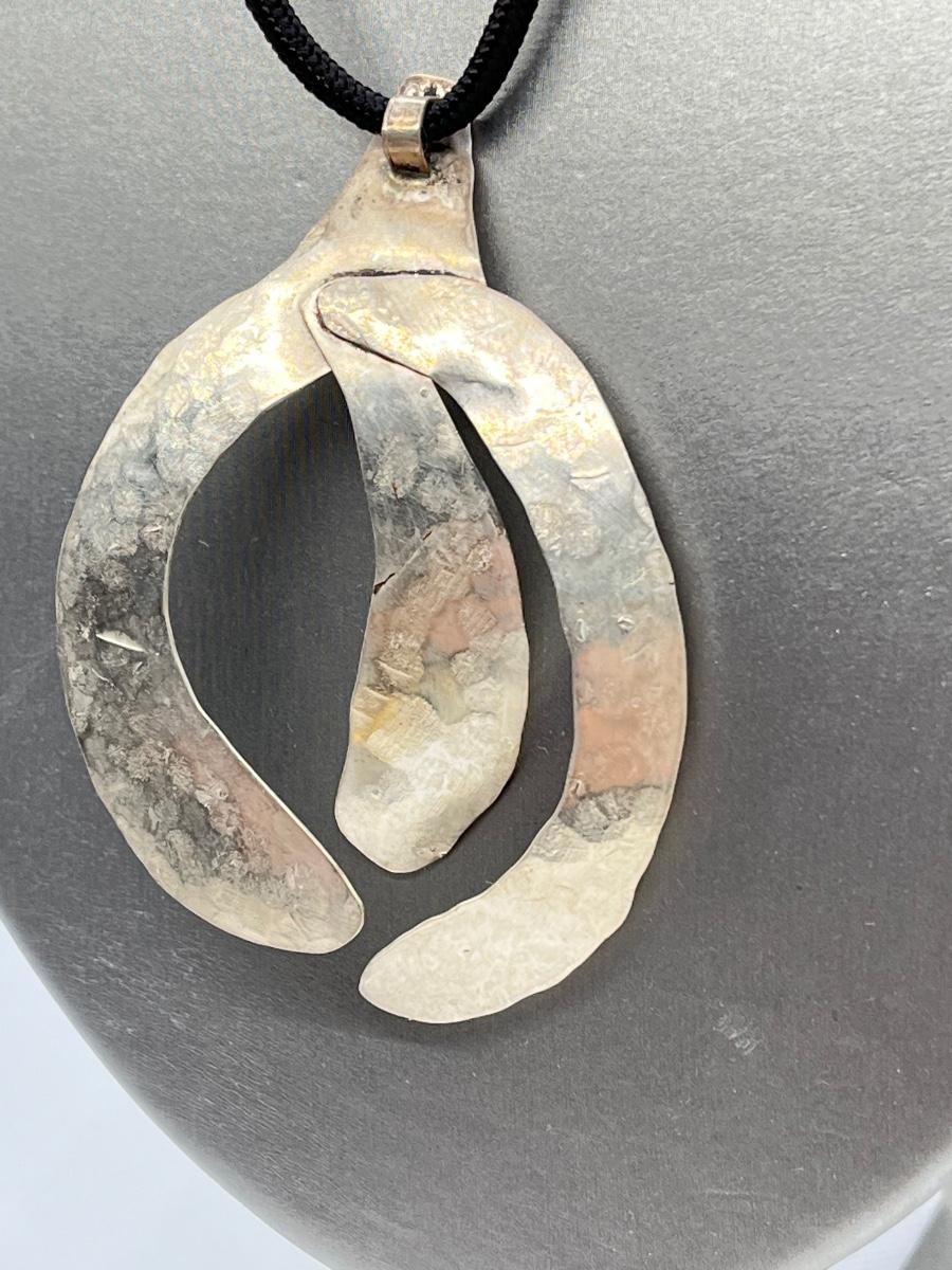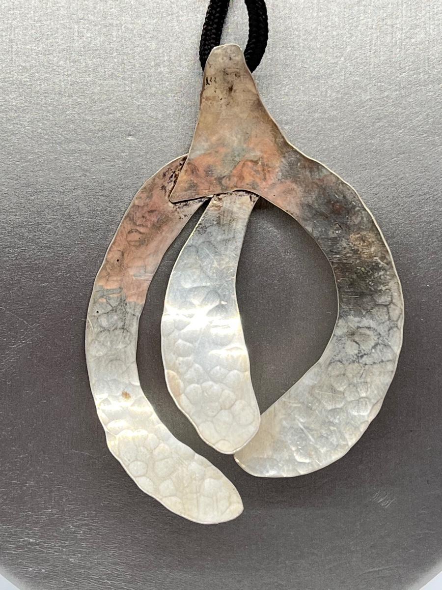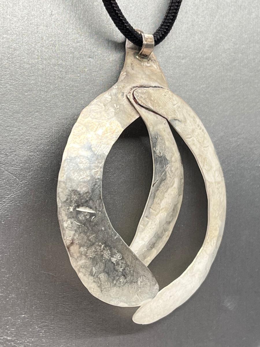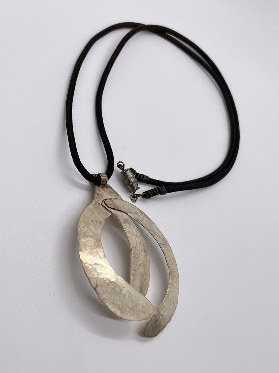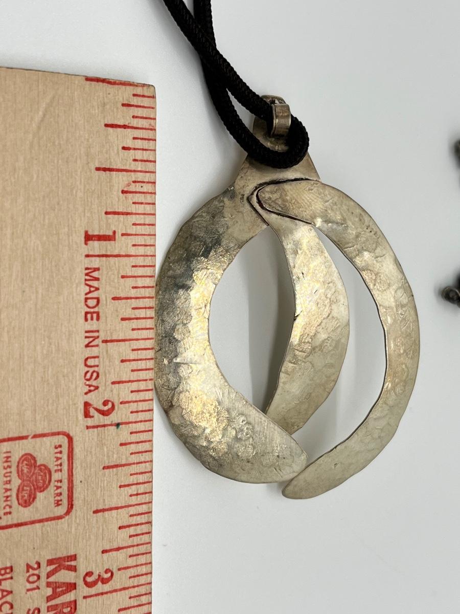 LOT 71: Handcrafted Hammered Silver Pendant on 20" Cord Necklace