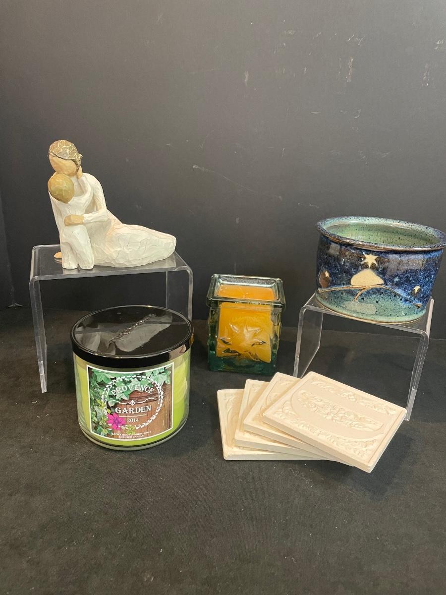 Willow Tree Statue "Child's Touch", candle, coasters, pottery bowl