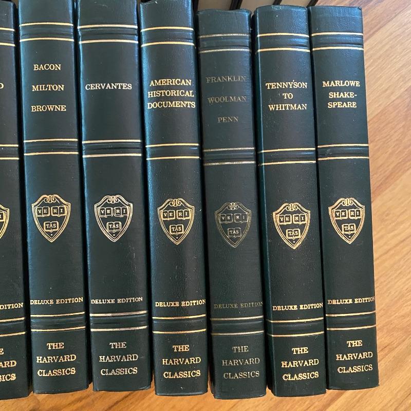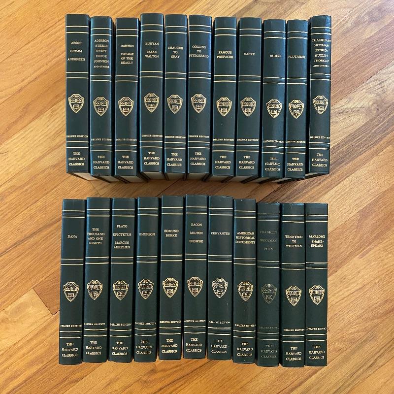 Nice green and gold 22 Volume set of The Harvard Classics “The Registered Edition” This Deluxe Edition dated 1937 is in excellent condition. See photos for titles. Shipping available