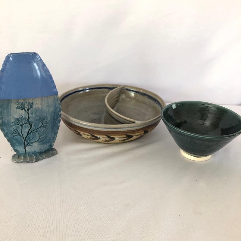 We have compiled a lovely selection of ceramics for you in this lot. The only piece unsigned is pictured last, the other 5 pieces are signed however some of the signatures are difficult to decipher but all are photographed. The largest piece is both stunning to look as well as useful, this chip and dip bowl measures approximately 10.5”. The smallest piece measures 3”. Each of these six pieces will beautify your home.