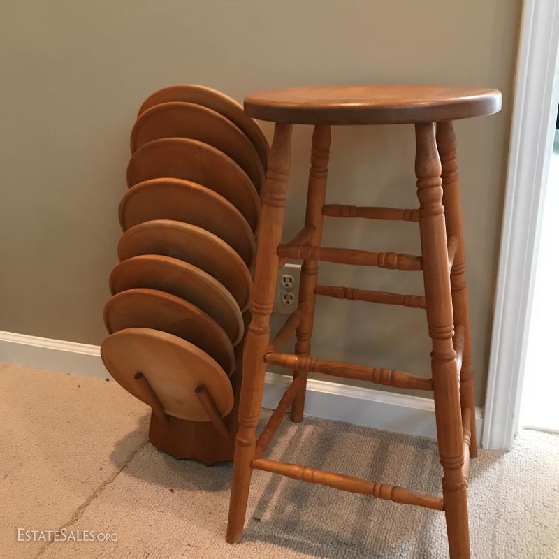 Lot 71- Bavarian Wood Plates and Rack with Stool