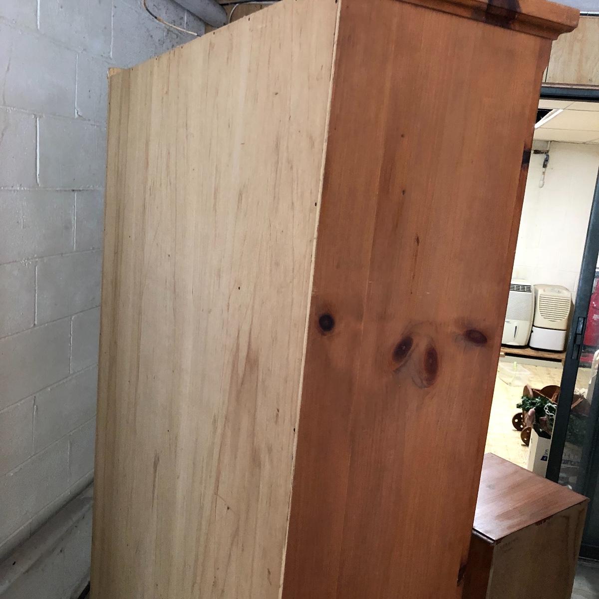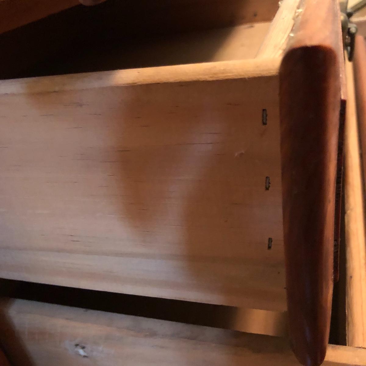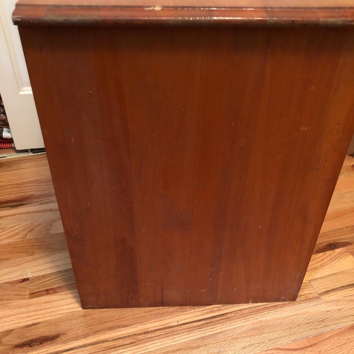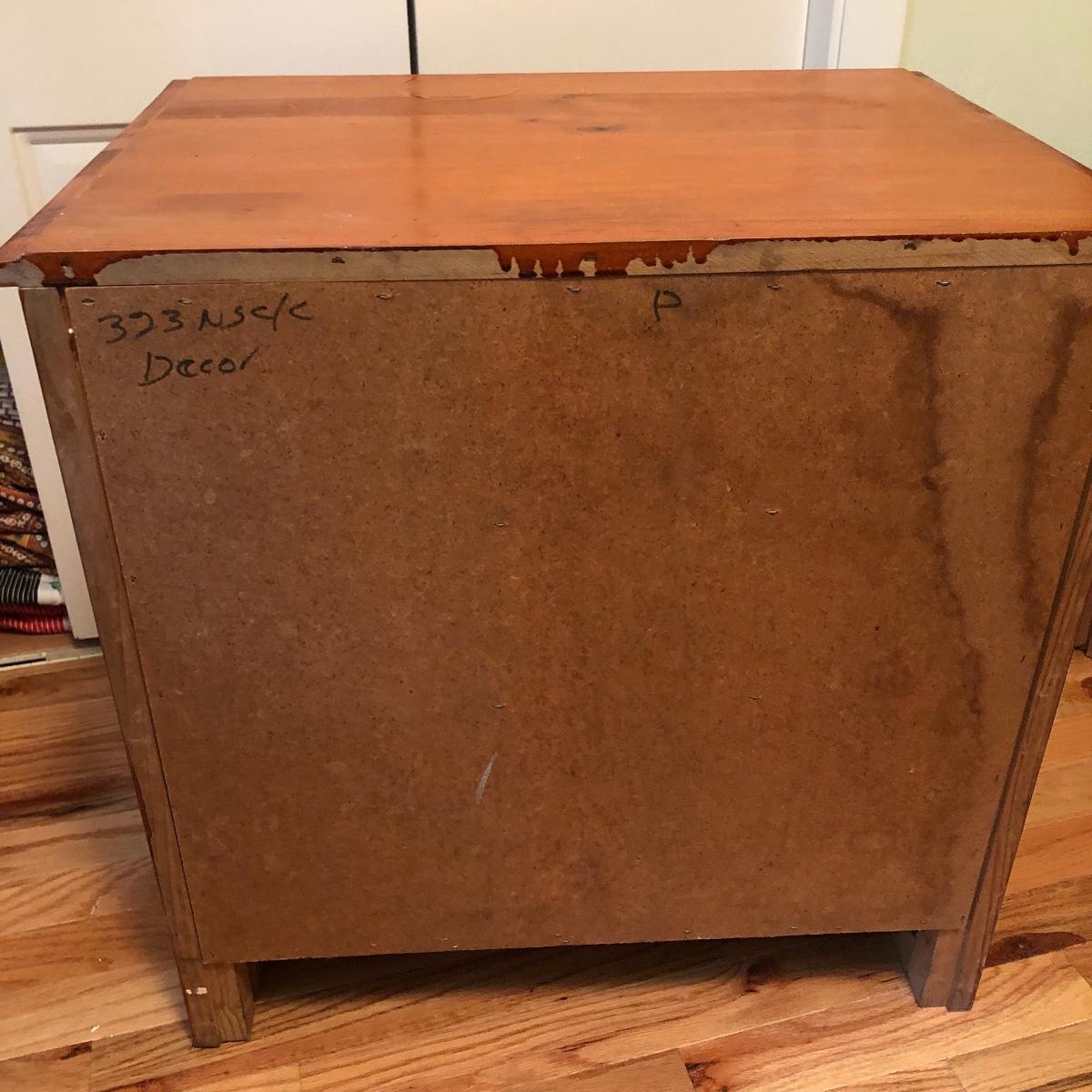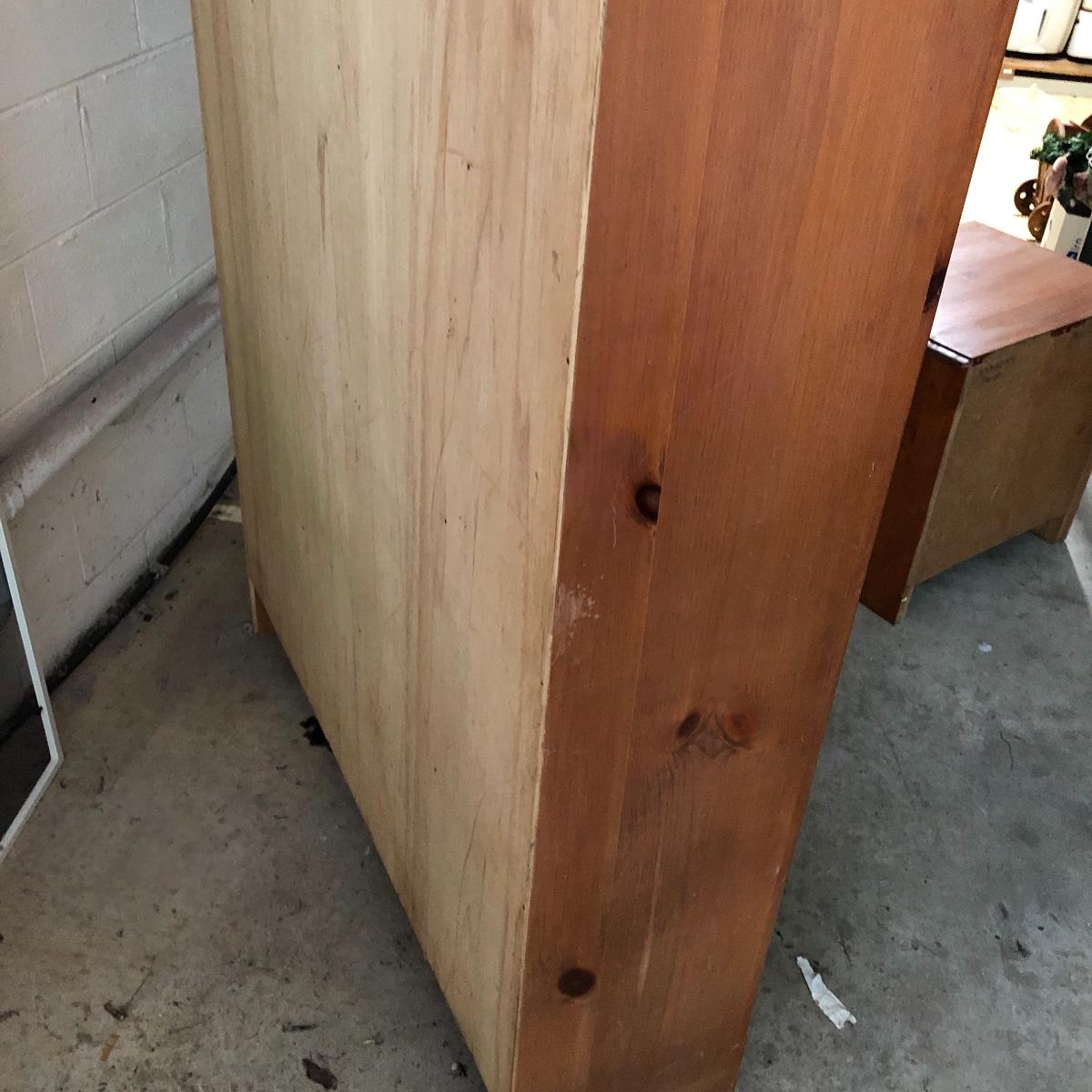 A nice pair of wooden pieces. Lot includes five shelf wooden bookcase and a three drawer wooden side table. Both pieces have some scratches and wear, see pictures. Bookcase measures 12.75” x 44” x 72” with shelves fixed in place and table measures 17” x 23” x 23.5”.