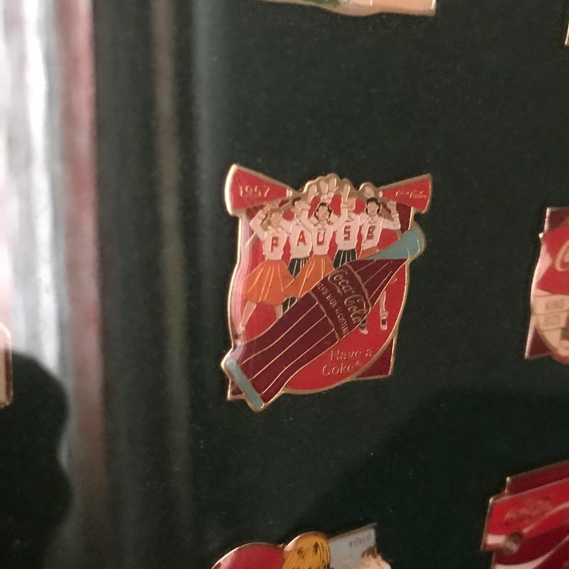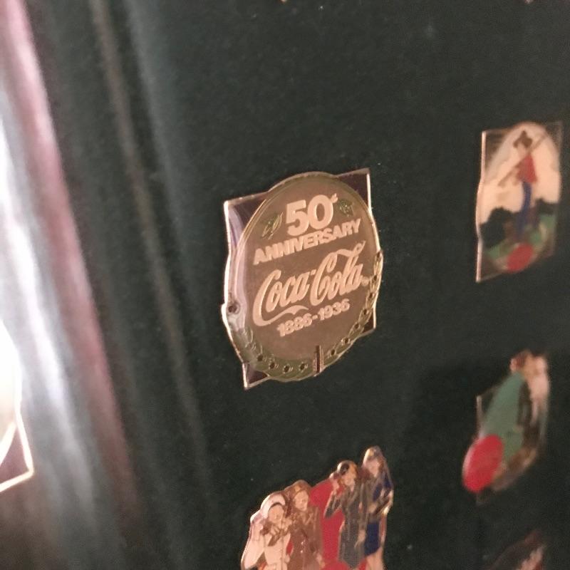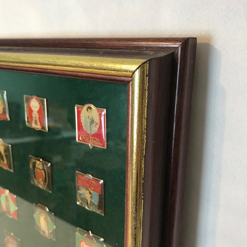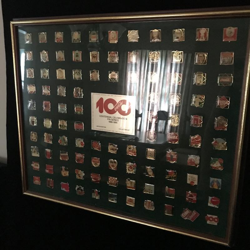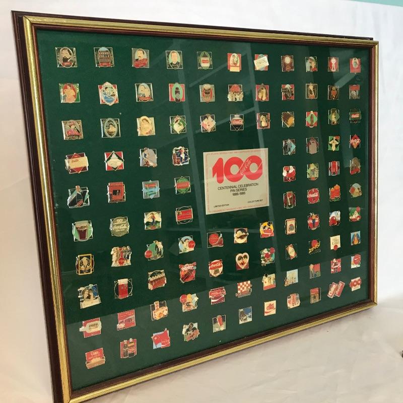 This is a fun piece of history. A beautifully framed, limited edition Coca-Cola Centennial Celebration Pin Series 1886-1996. Once again, glass panels are hard to photograph, but I hope you get a glimpse of what fun this would be for any Coca-Cola lover. Collection comes with original box. Wood frame is ready for your wall and measures approximately 25.25” x 21.5”. Shipping available. Shipping may be costly. Please call UPS with dimensions at 828-252-6930 for a shipping quote prior to bidding.