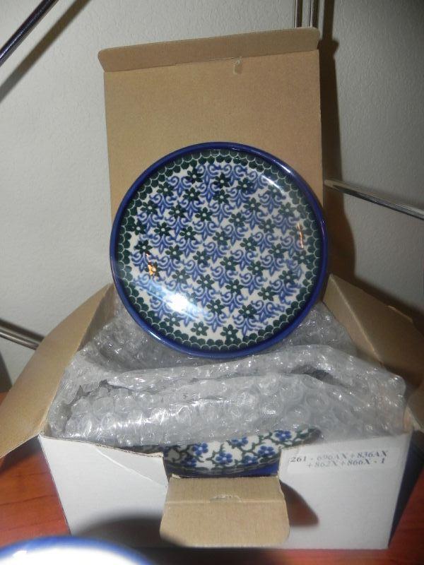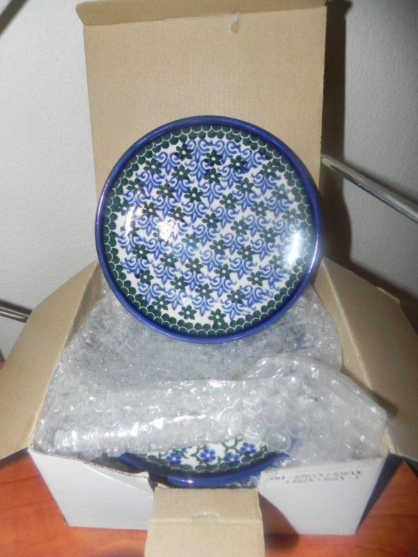 4 BLUE FLORAL DESIGN MATCHING DESSERT PLATES HAND MADE IN POLAND