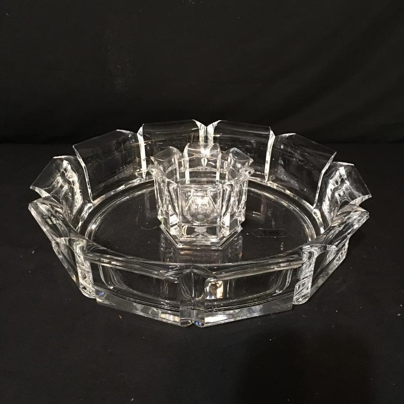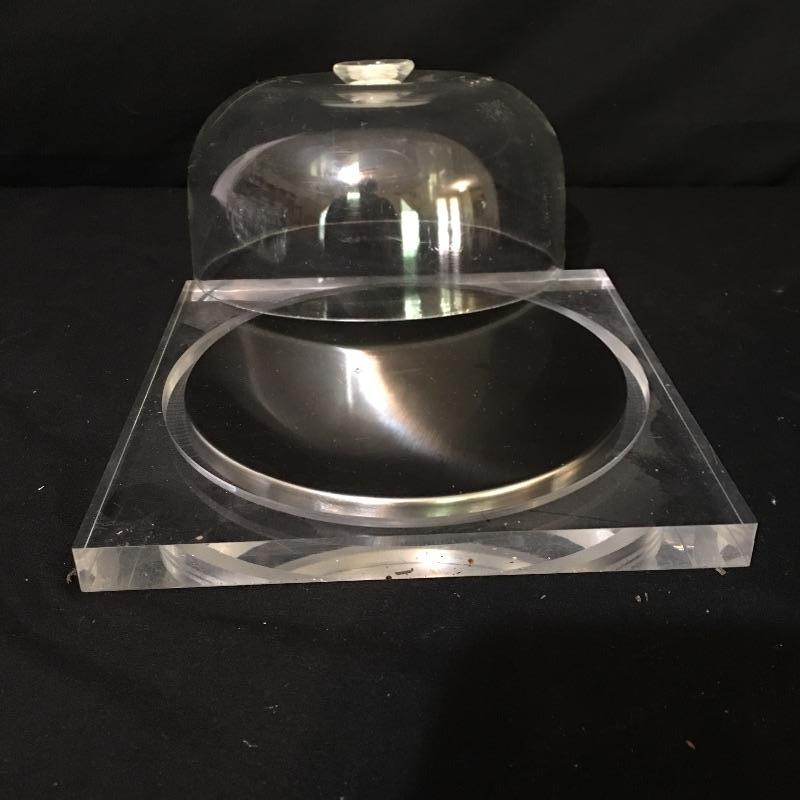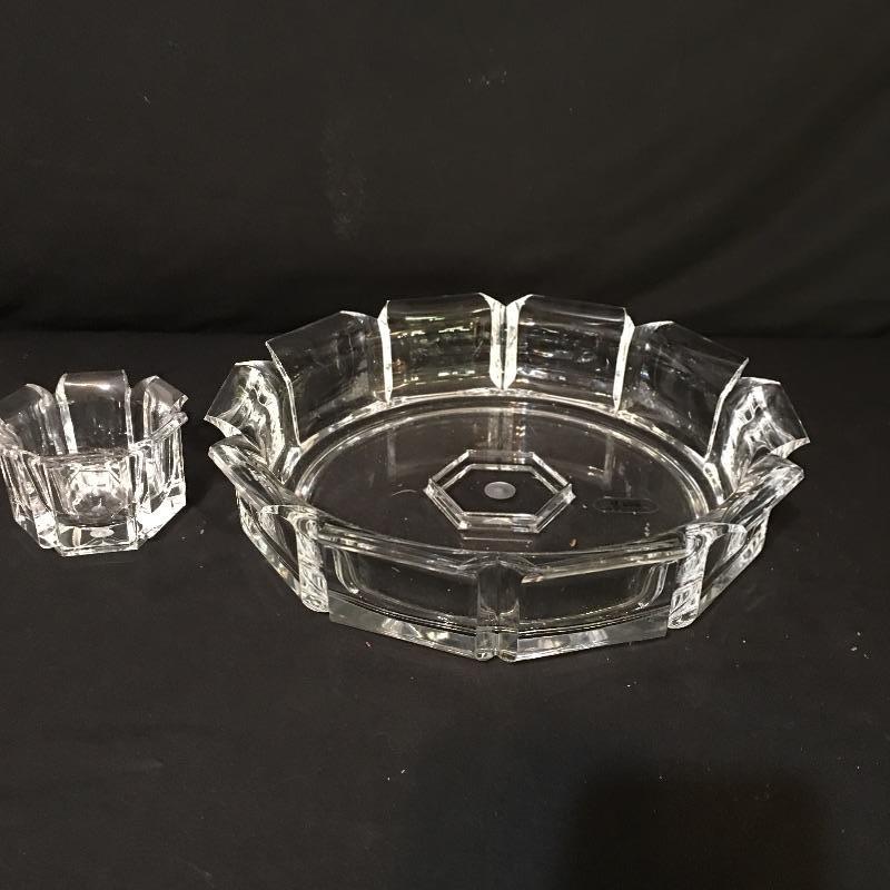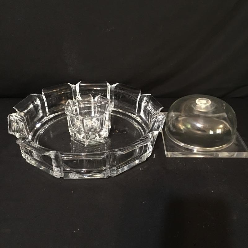 Grainware lucite bowl and more. Lot includes lucite plate with cover and a Grainware lucite chip and dip bowl. Be ready for the next time you can have a party with this trendy set. Chip bowl measures 13.5”D x 3” tall.