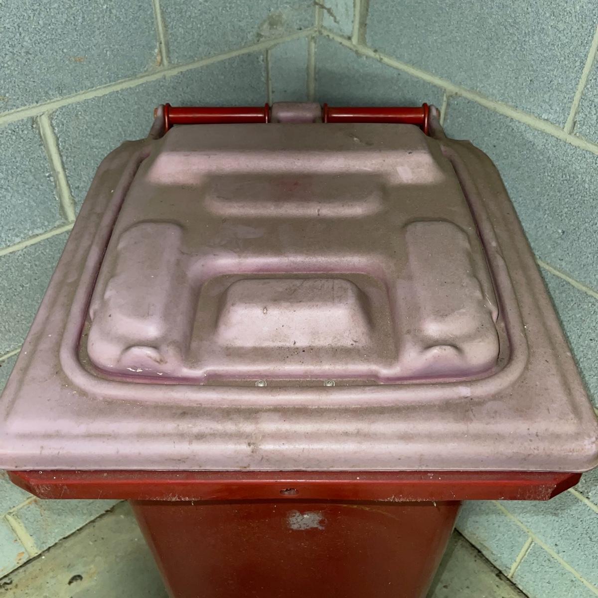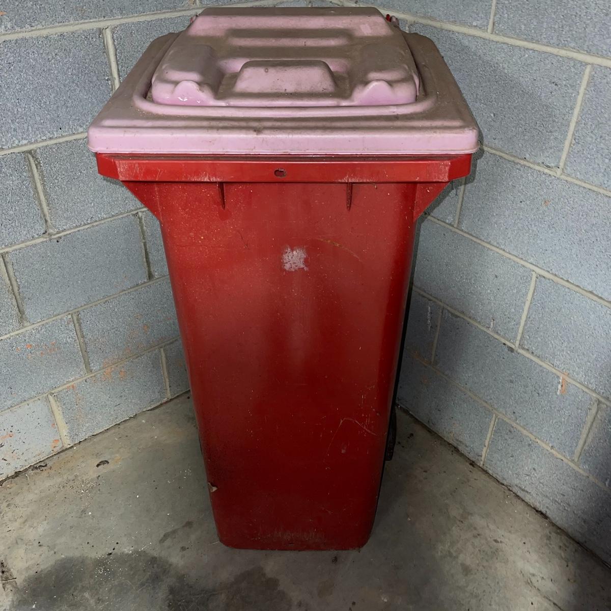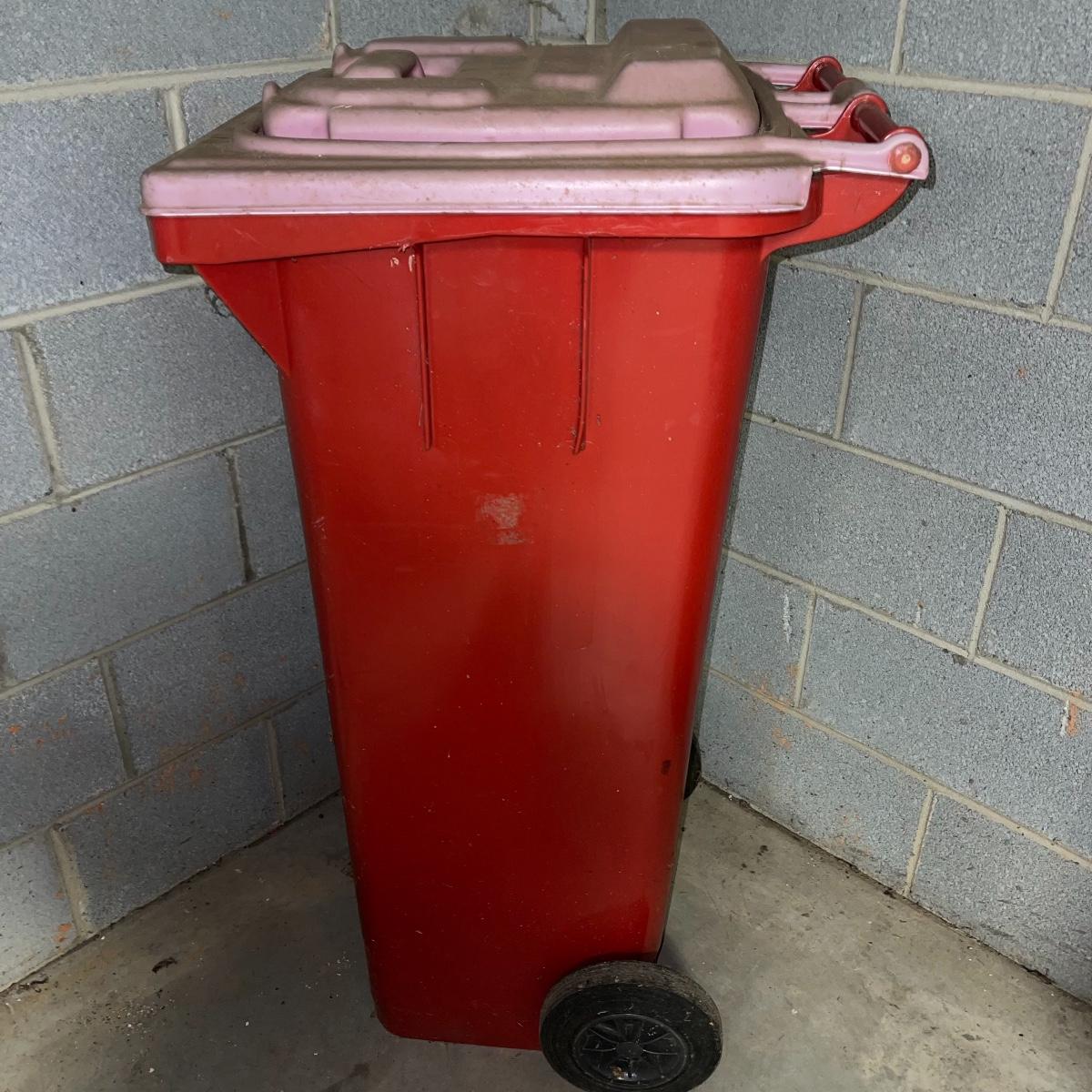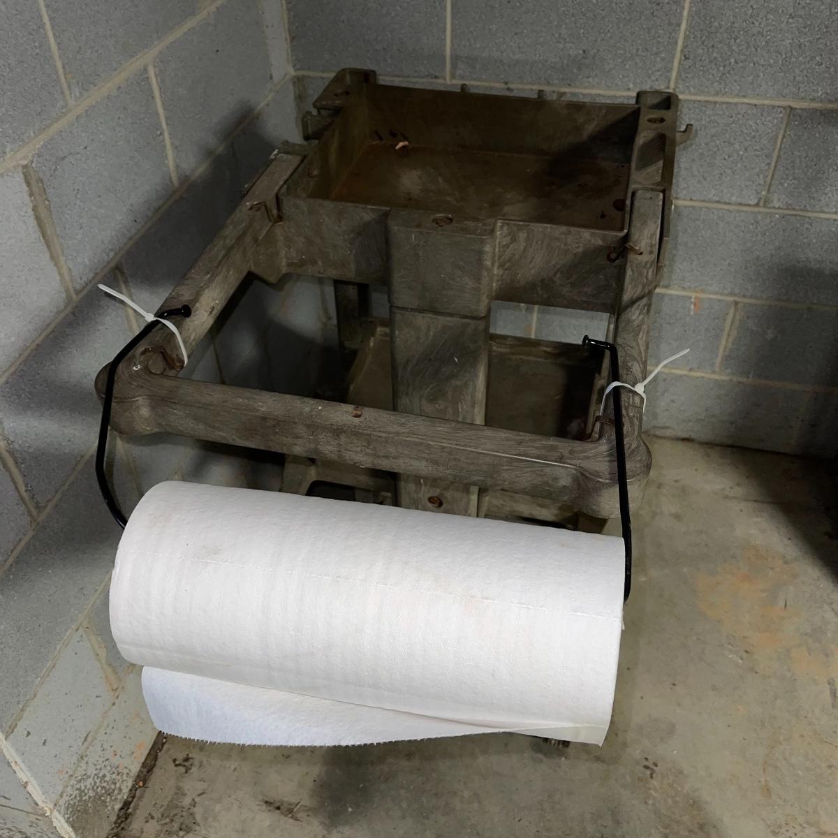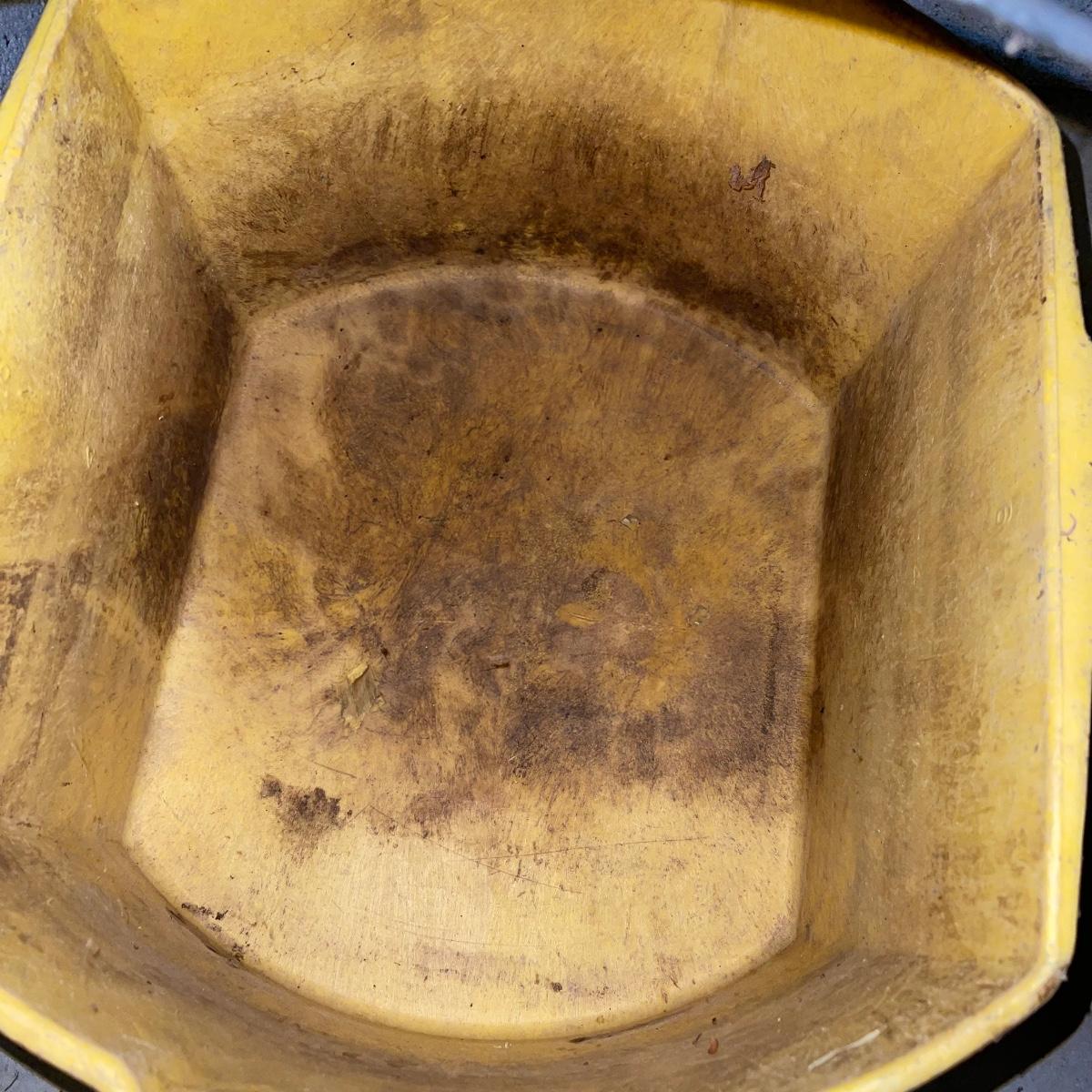 Preparing for a huge cleaning spree? This lot of a janitor’s cart, a mop bucket, two garbage cans, and a cone is ideal for those cleaning needs. The janitor’s cart has four wheels that move smoothly. It’s body is gray heavy duty plastic and it has an attached spot for paper towels. Next up is a lidded gray Brute Rubbermaid trash can on wheels for easy portability. It is 32 inches tall and is a 32 gallon can. The second trash can is red and is approximately 42 inches tall. It is quadrilateral with an attached lid and two back wheels. The last items are an orange safety cone and a yellow mop bucket that fits perfectly on the janitor’s cart. Give these items a spray or wipe down and you’ll experience the ease of cleaning with a cart and portable trash cans.