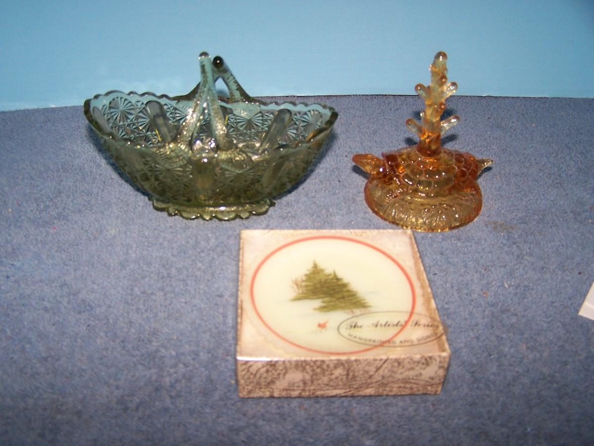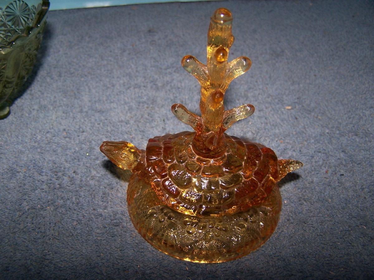 THIS IS LOVELY COLLECTABLE FENTON GLASSWARE!!! PLATE IS MARKED.. TURTLE IS 4'' TALL AND HAS A FLAKE... LIGHT WEAR..