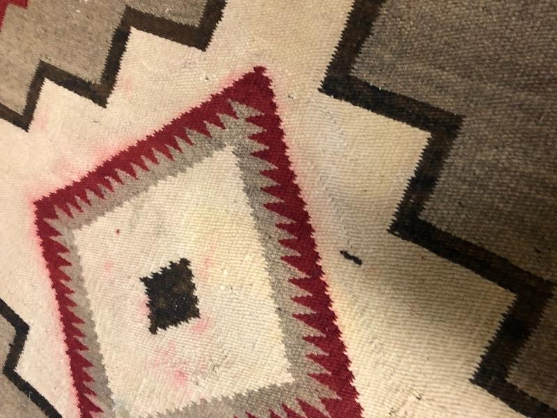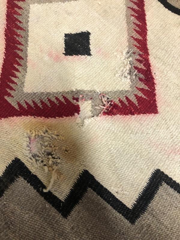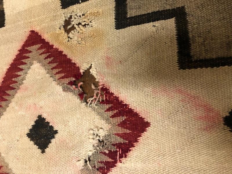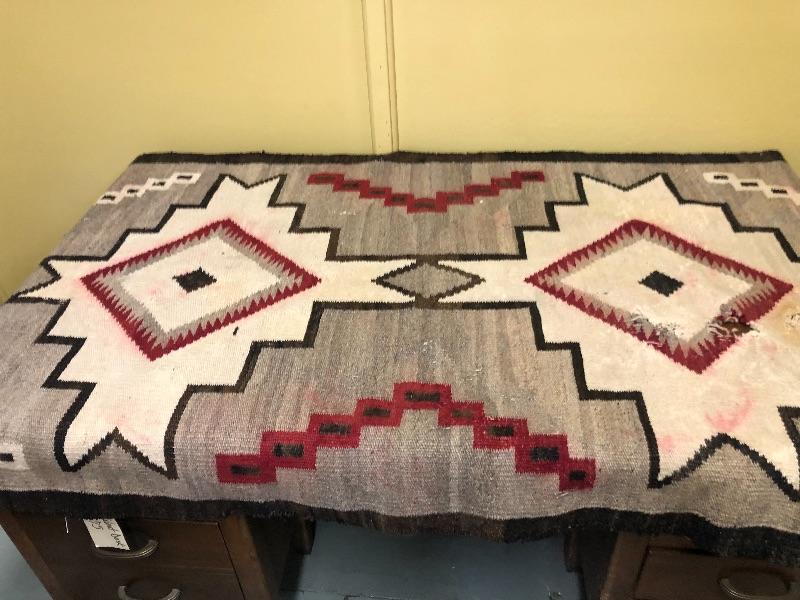 Native blanket hand woven and Immigration game, Vintage used condition, ther are a few large holes and bleeding