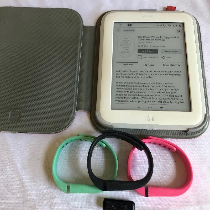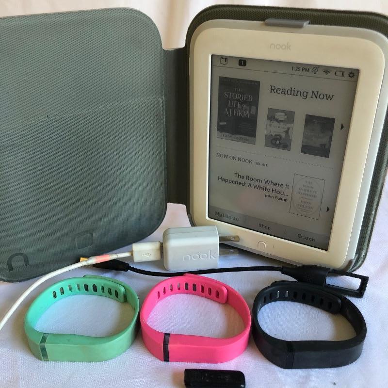 Included in this lot is a Nook Glowlight eReader, a Fitbit and Roku.