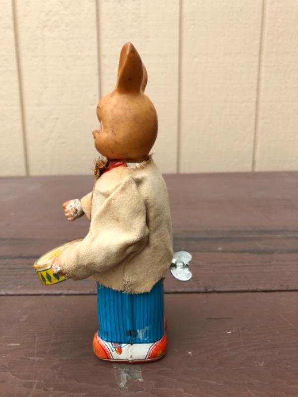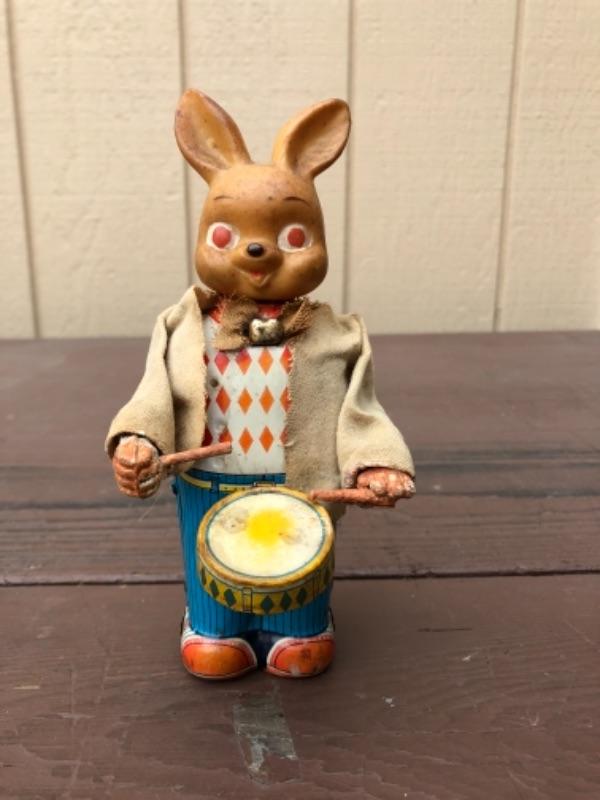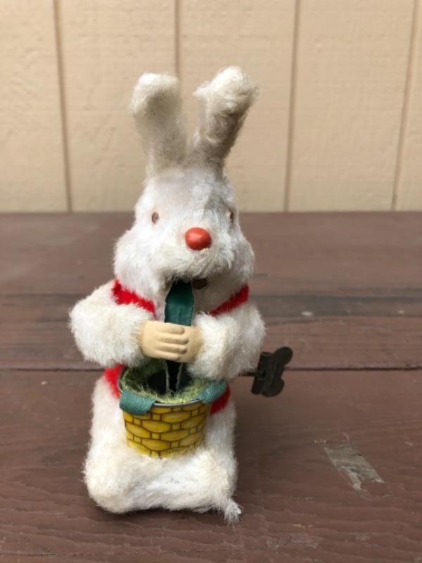 Lot 71: Pair of Bunnies: White Fabric, Tin, Wind-Up, 1950’s
