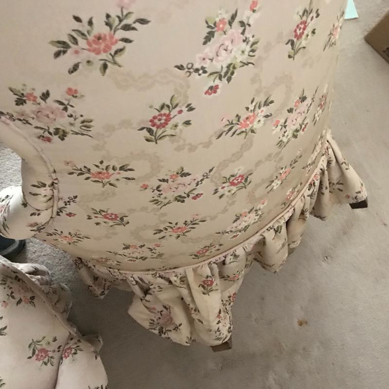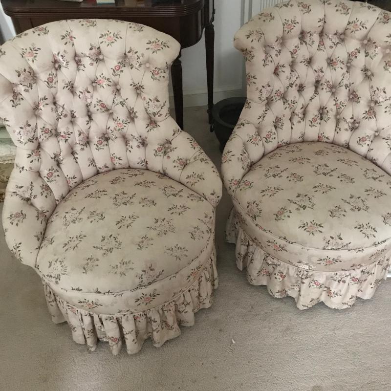 Pair of pretty, comfortable floral print chairs. Each is approx. 27” x 22” x 31”. Seats are somewhat worn from wear. No shipping available. Local pickup only in Asheville, NC.
