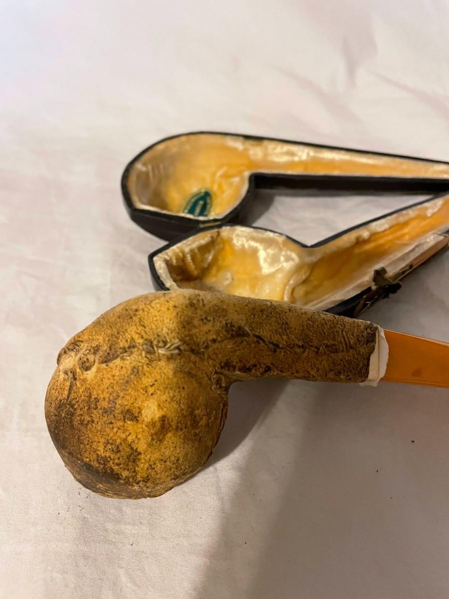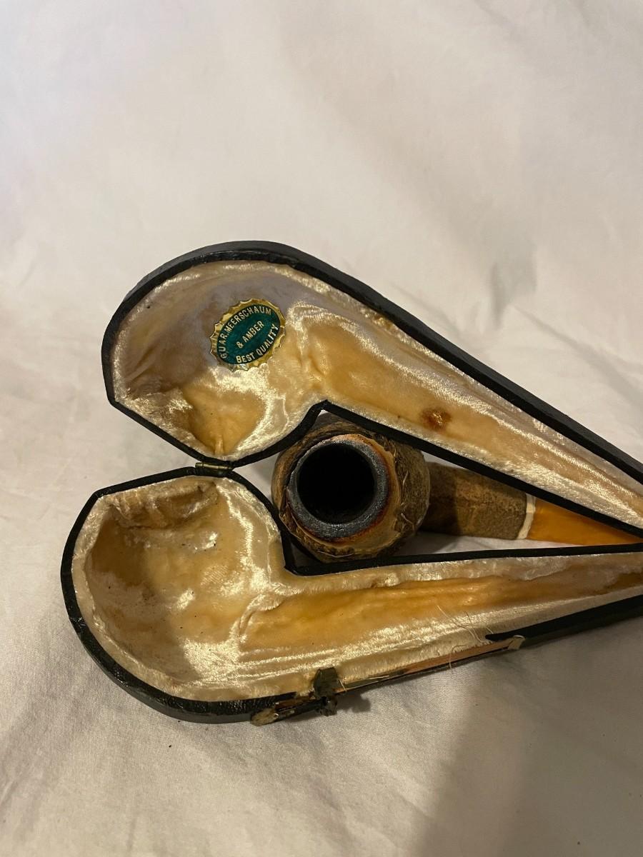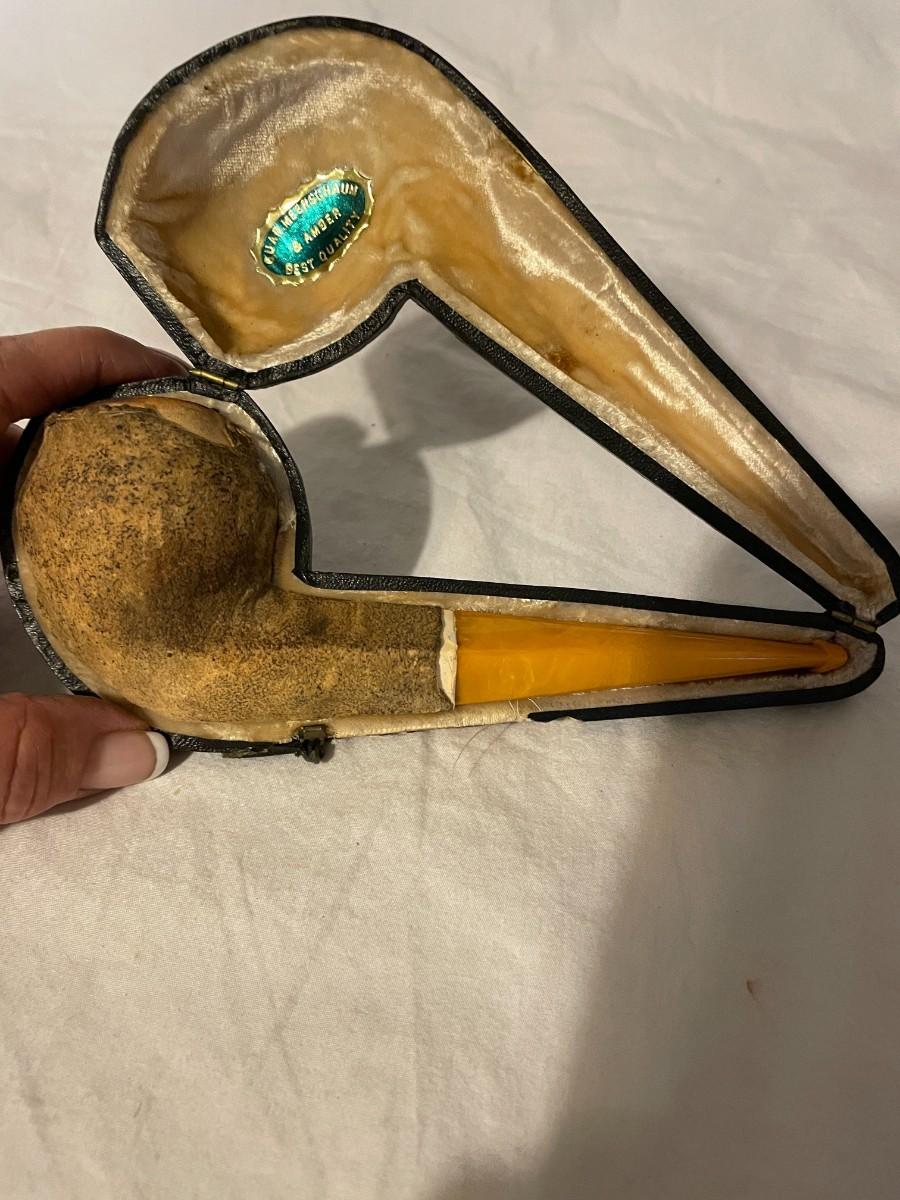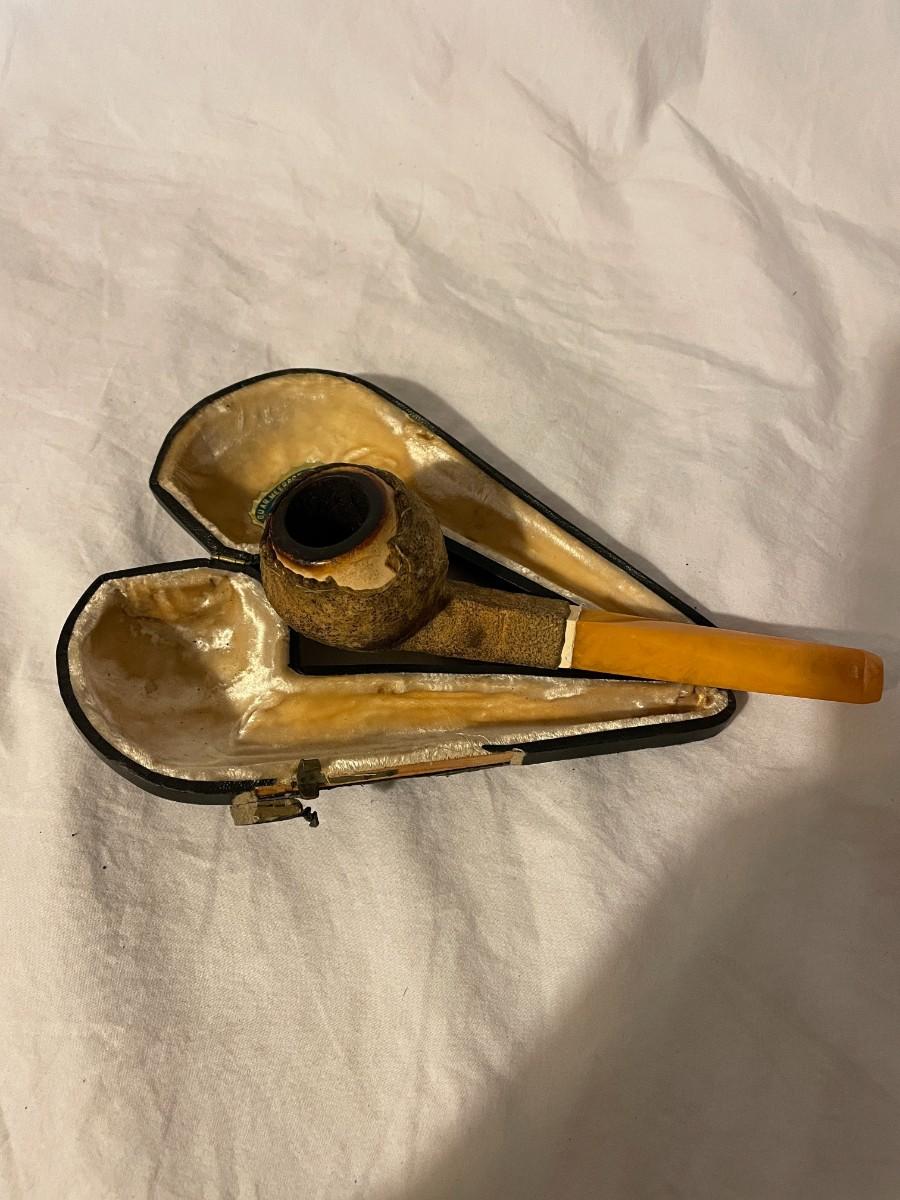 TOBACCO PIPE WITH CASE. VELVET LINING IN CASE. GUAR.MEERSCHAUM AND AMBER BEST QUALITY
