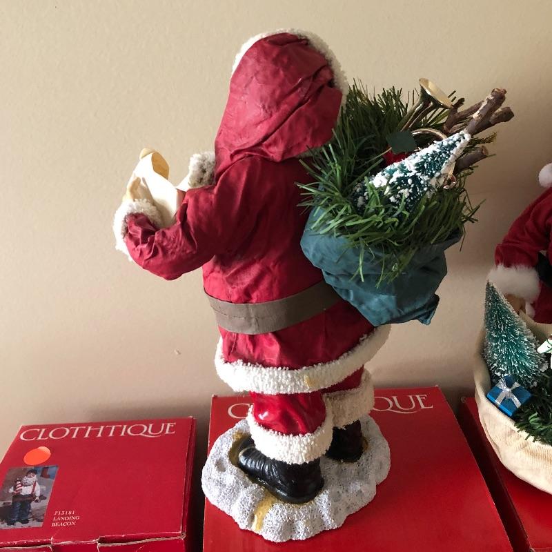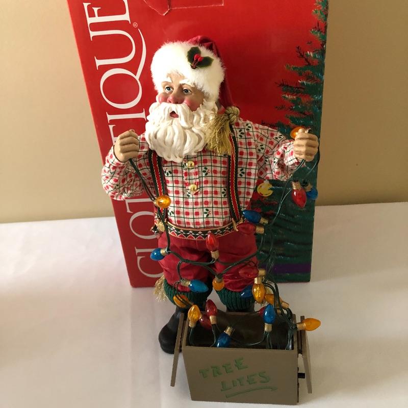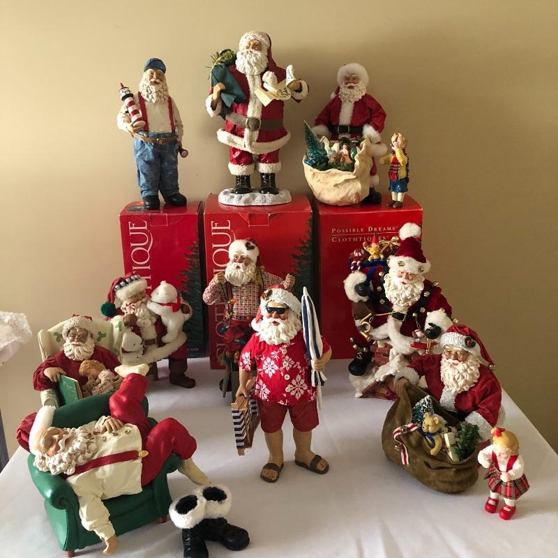 Feel Jolly with this lot! This lot includes ten unique Santa Clauses and their boxes. Some illuminate (see pictures) and they are made of a fabric mache and plastic. Each Santa varies in height 7” to 10”. Shipping available.