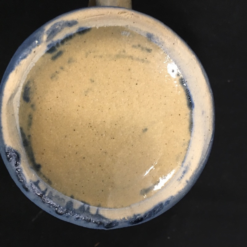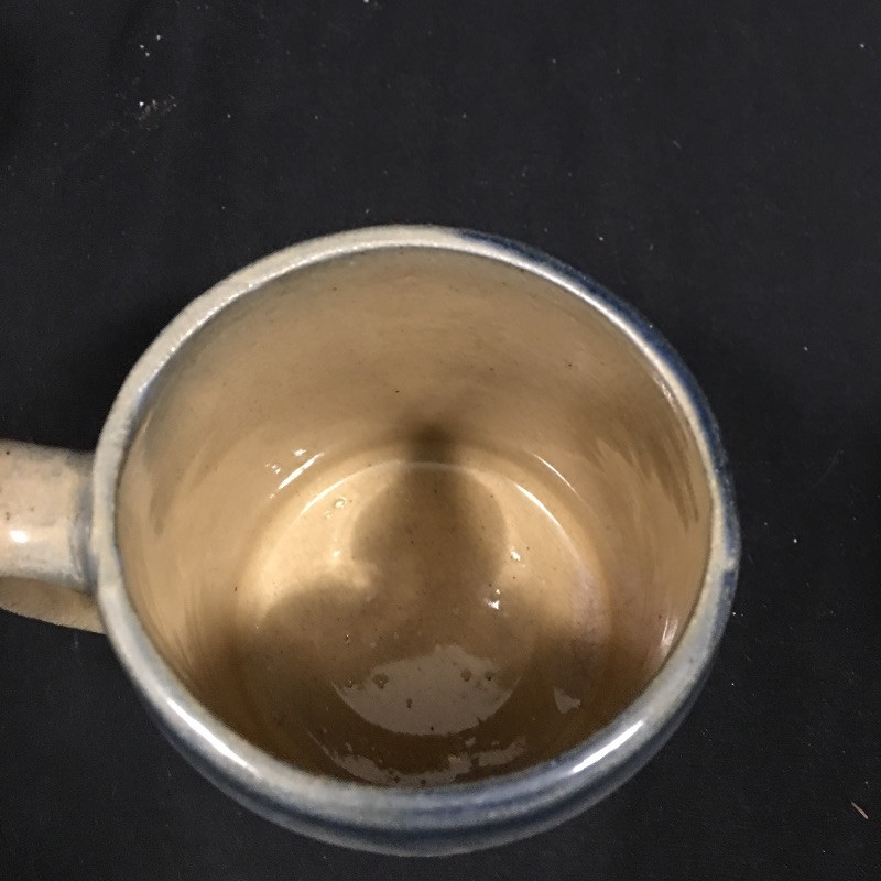 Beautiful ceramic pitcher with four matching mugs. A great set for relaxing on the patio and having a cold drink with friends. Pitcher measures 6”D x 8.5” tall. One mug has a small chip, see pictures.