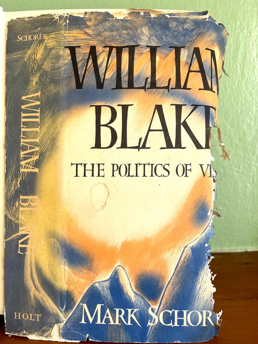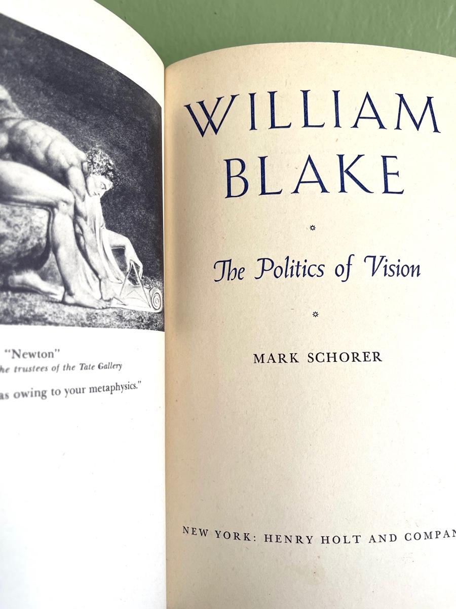 LOT 71 - William Blake - The Politics of Vision by Mark Shorer. This book is signed by the author with a personal inscription to David. It includes very worn partial dust jacket.