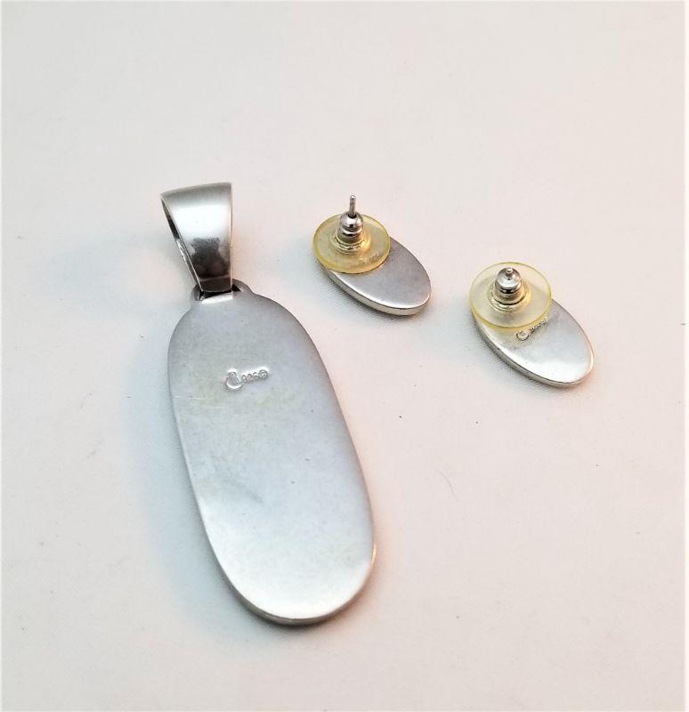 Lot #71 Sterling Stone/Enamel Pendant with Matching Pierced Earrings