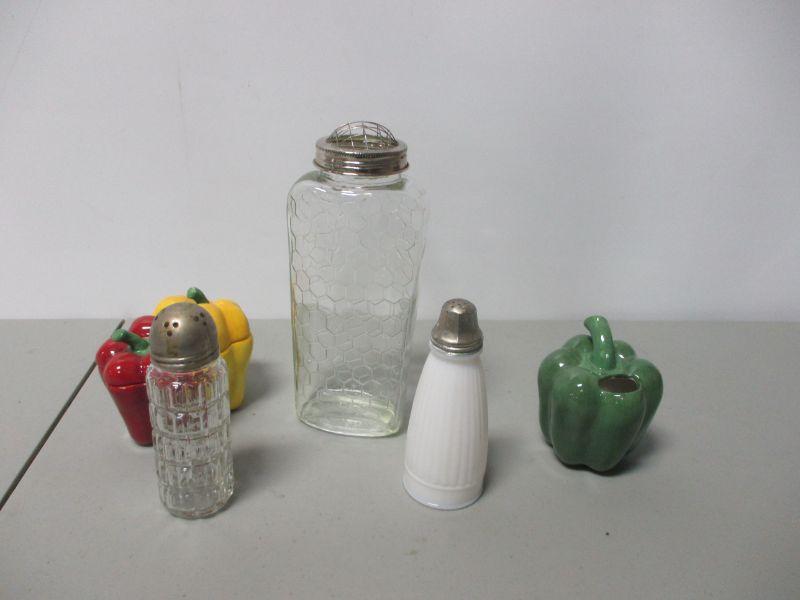 Lot 71 - Vintage Honeycomb Glass THT 03 Flower Arranging Frog Vase Display & Salt & Pepper Shakers