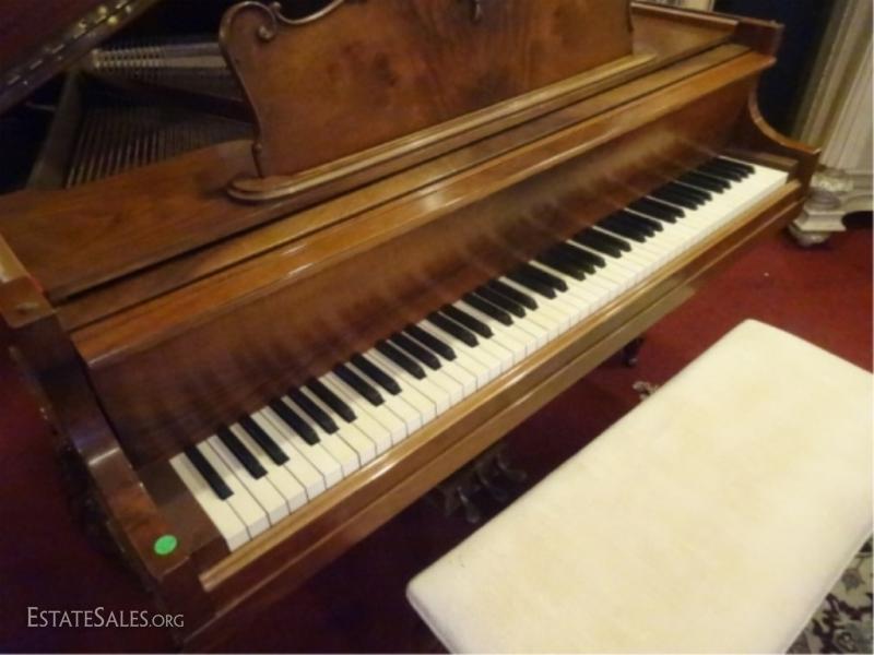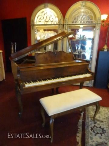 LOT 71: VINTAGE WICKHAM BABY GRAND PIANO, 54"W X 54"D, SMALLER "APARTMENT SIZE" BABY GRAND, CASE IS IN VERY GOOD CONDITION, PLAYABLE IN TUNE CONDITION, WITH BENCH, INEXPENSIVE DELIVER IS AVAILABLE IN THE BROWARD, PALM BEACH, AND MIAMI DADE COUNTY AREA (CALL FOR ESTIMATE), SKU9002.43