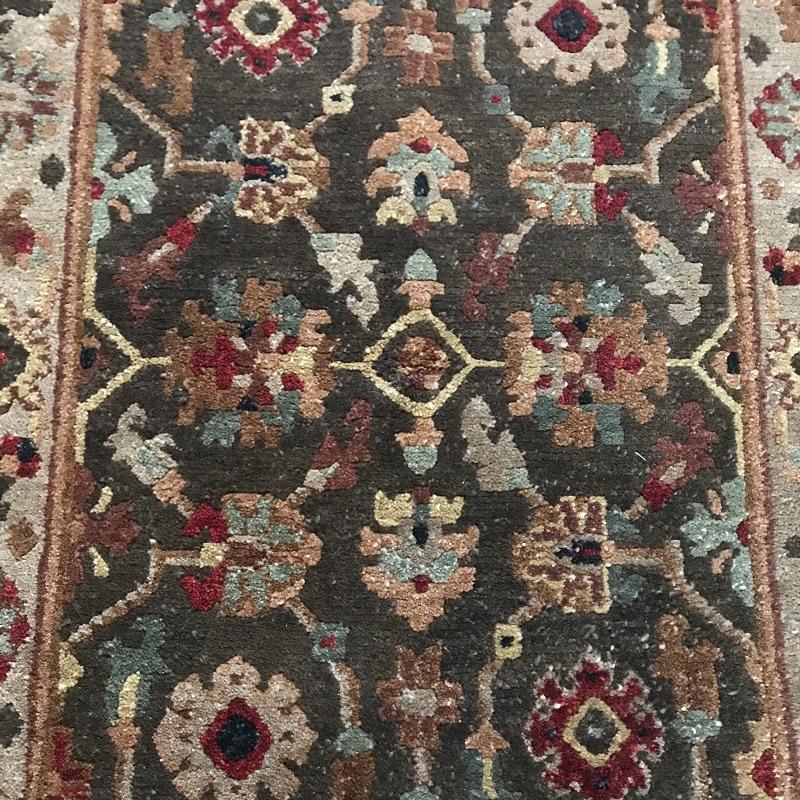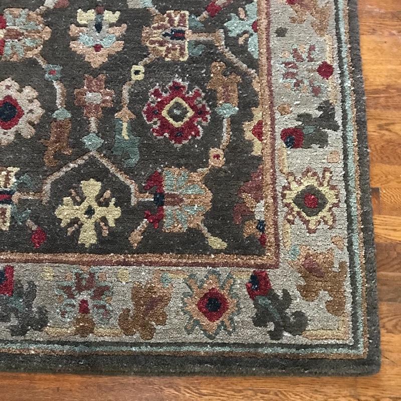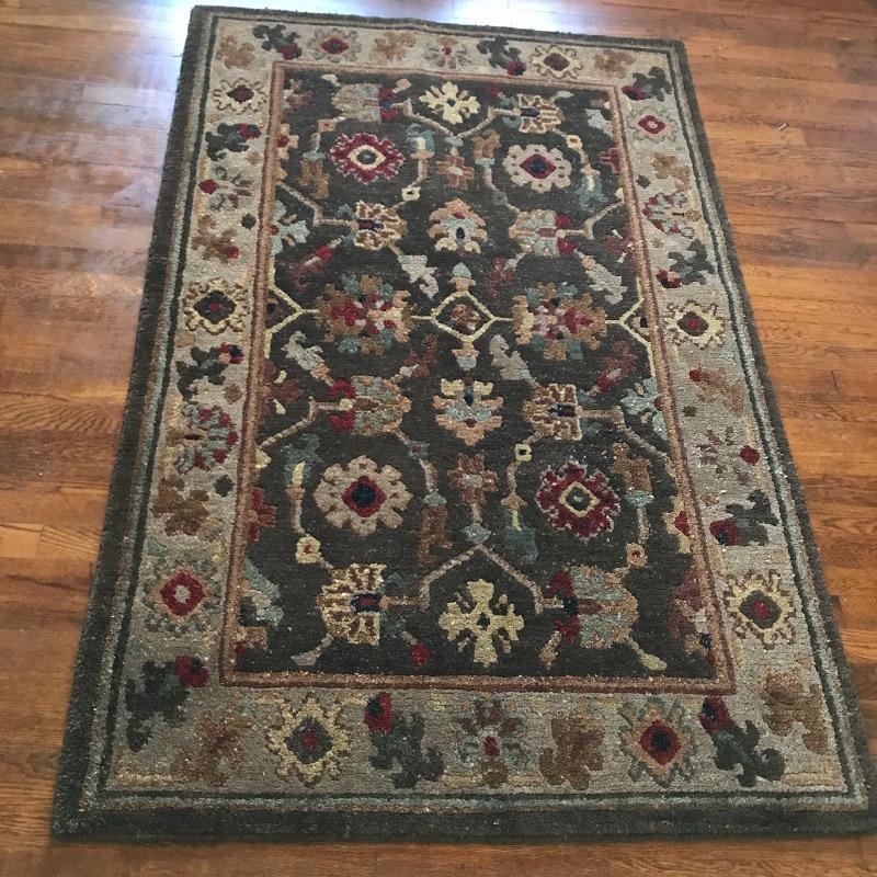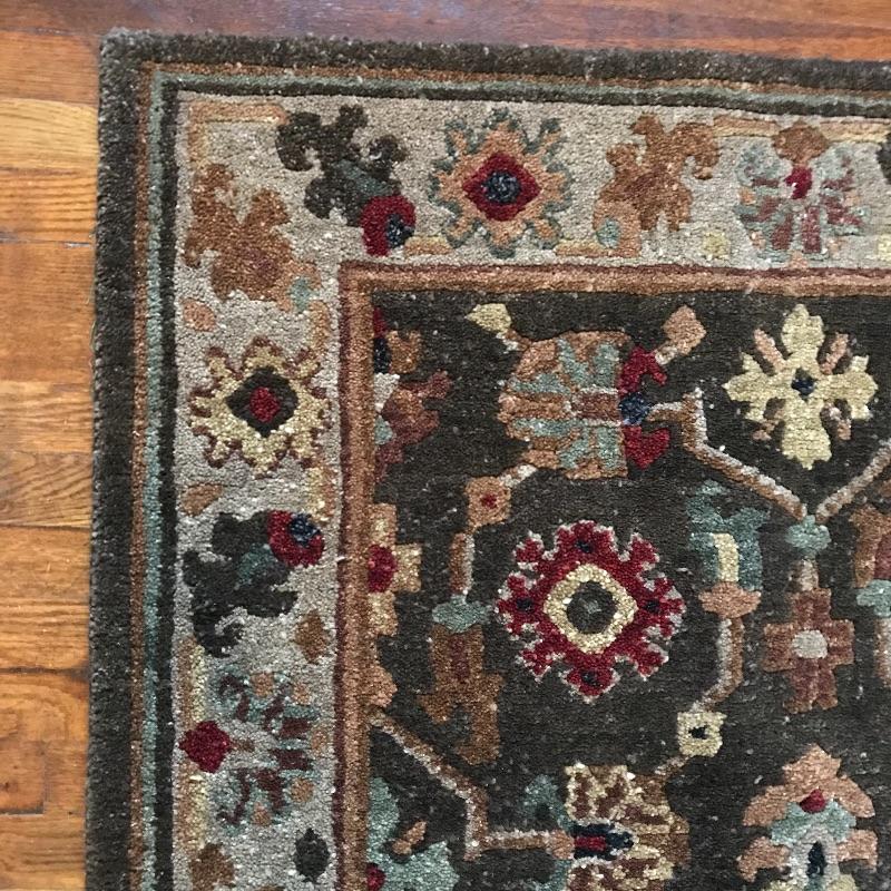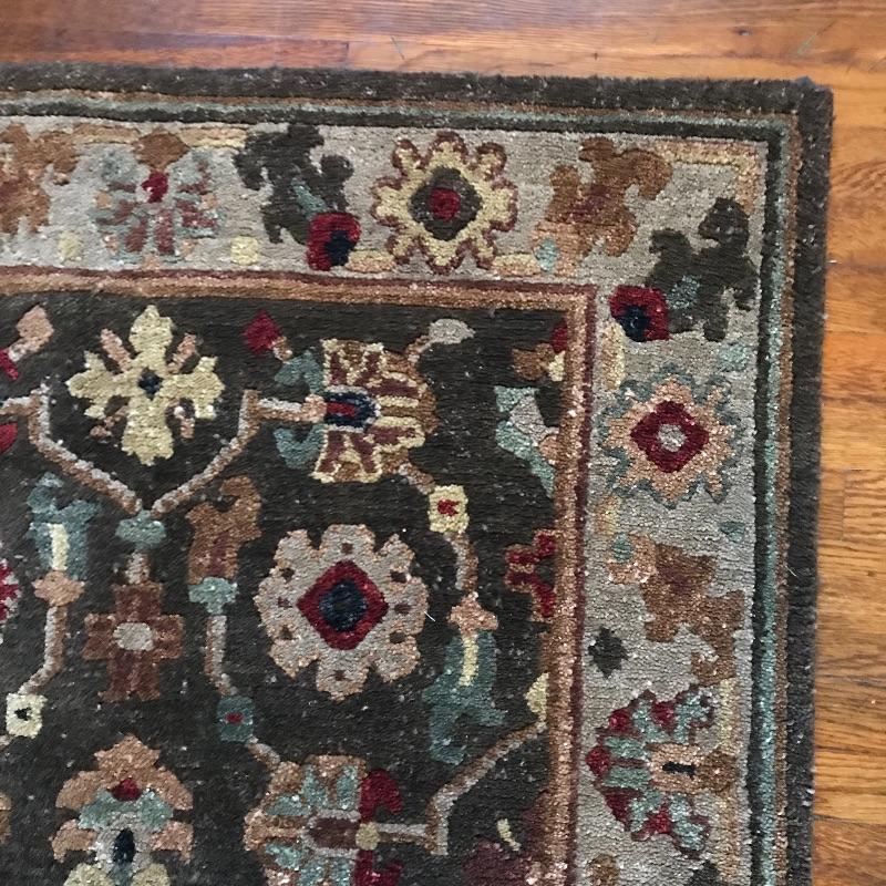 Another earth toned Arts & Crafts style area rug. This smaller woven wool area rug by Nourison, Tahoe Collection measures about 46” x 70.5” with mimicking designs from lot 70. This one has some pilling, and appears to hold some deeper colors than the larger rug. Don’t let this deep dark beautiful rug slip away! We’ve also included a high quality non-slip rug pad. See photos. Local pick up only.