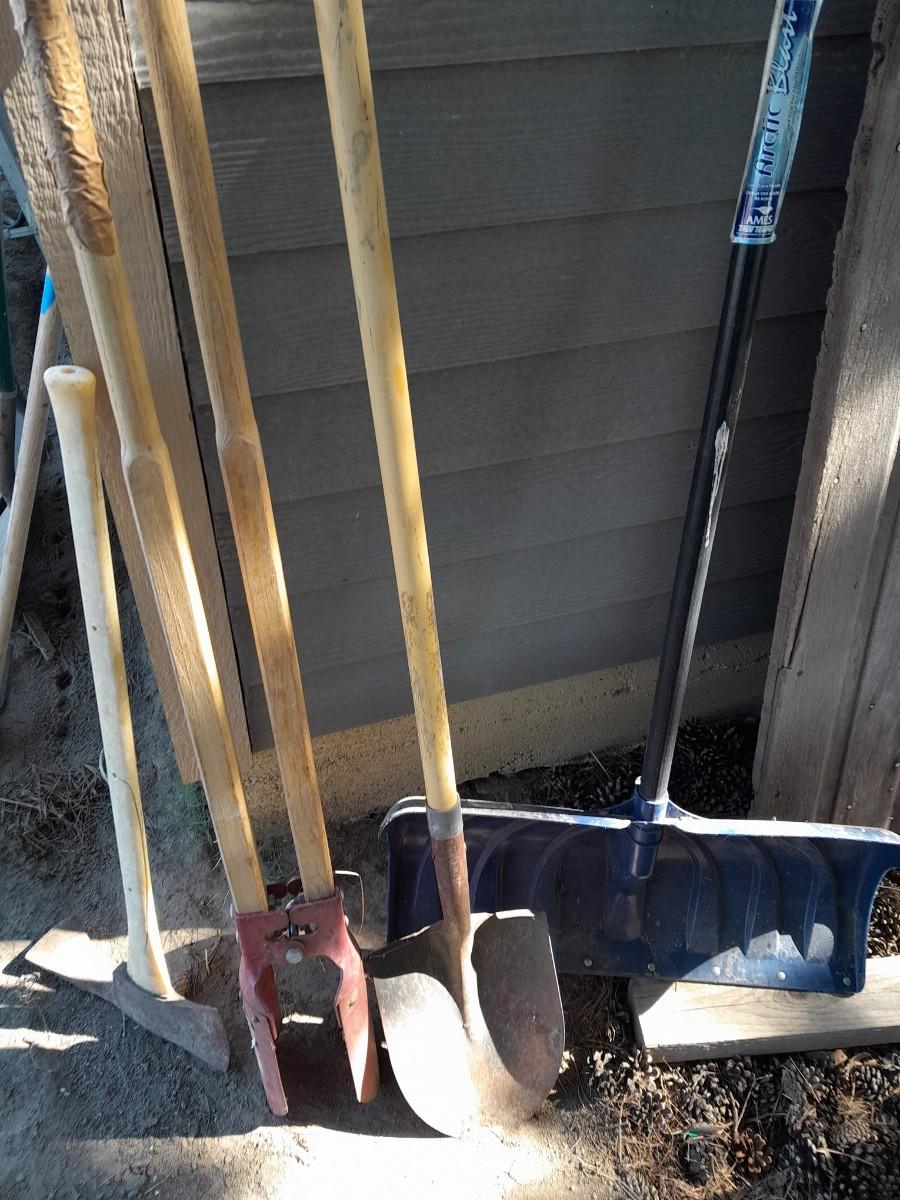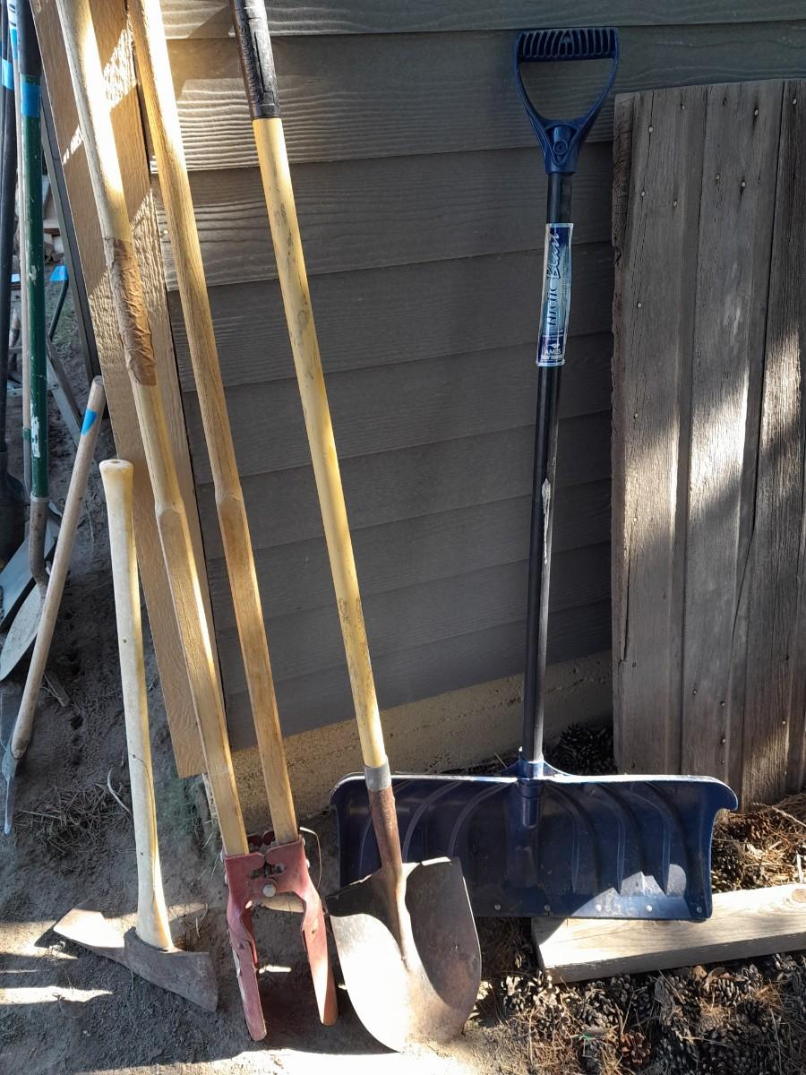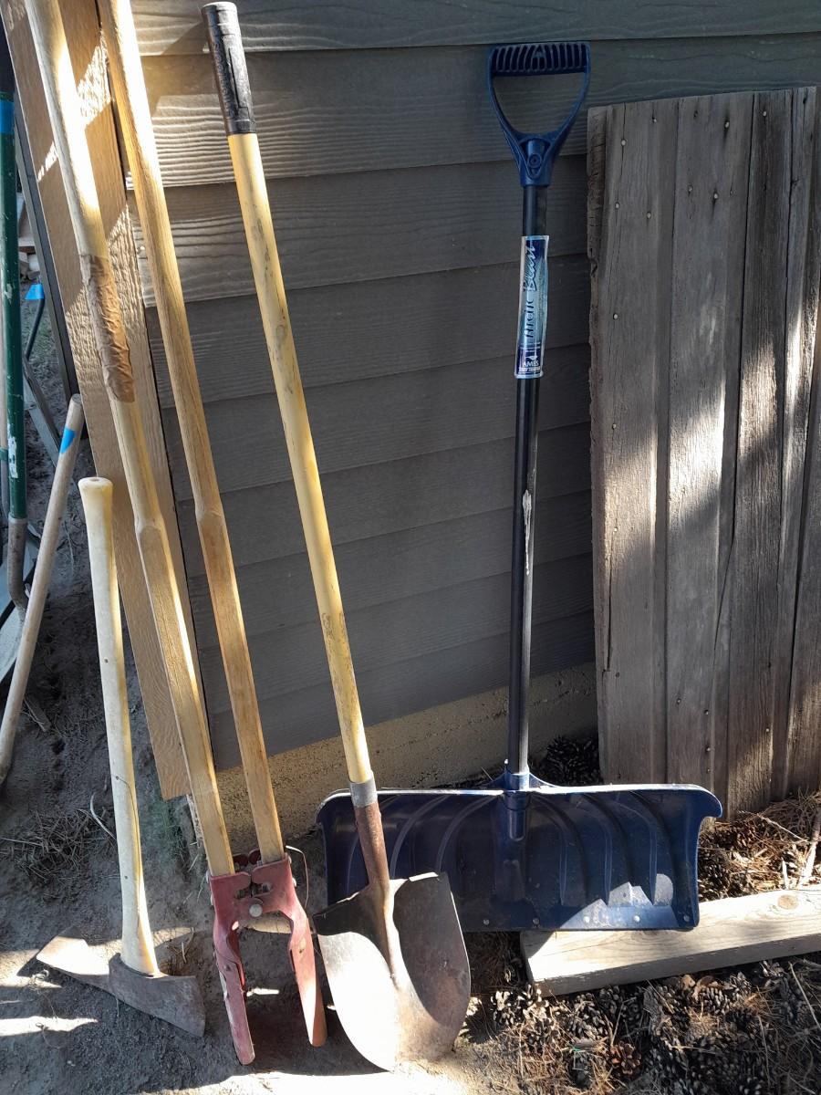 YARD AND GARDEN TOOLS WITH A NICE SNOW SHOVEL