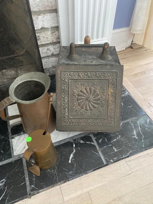 Lot #710 Brass Coal Hod with Copper pitcher, fire starter