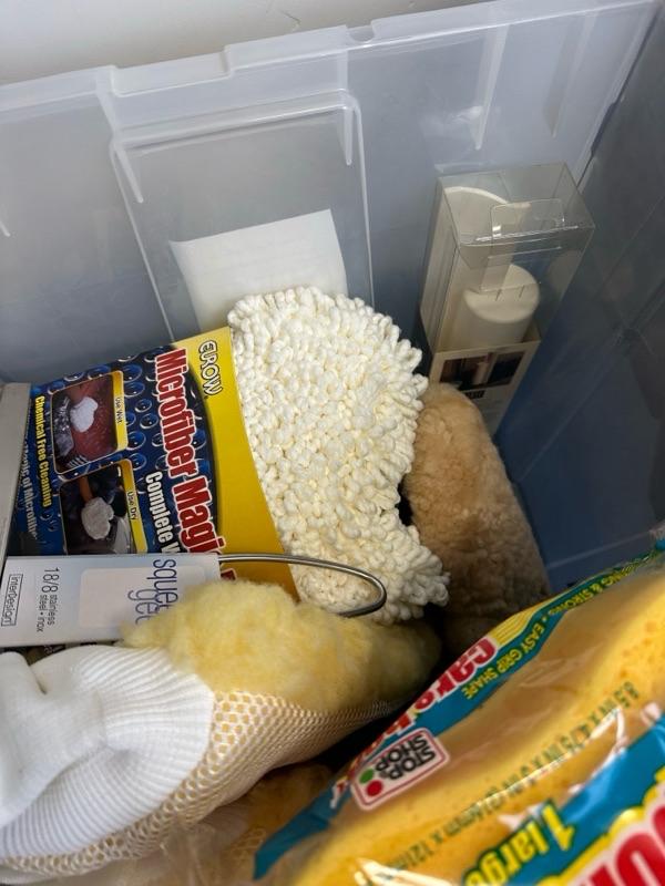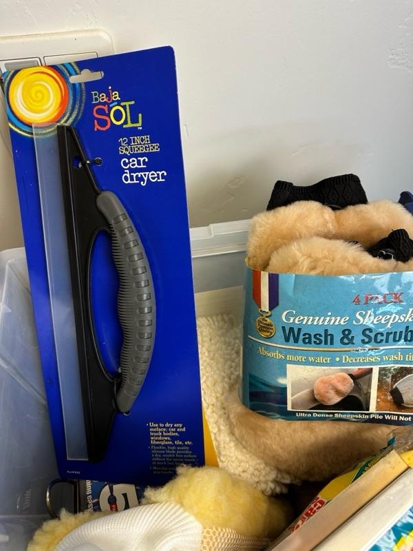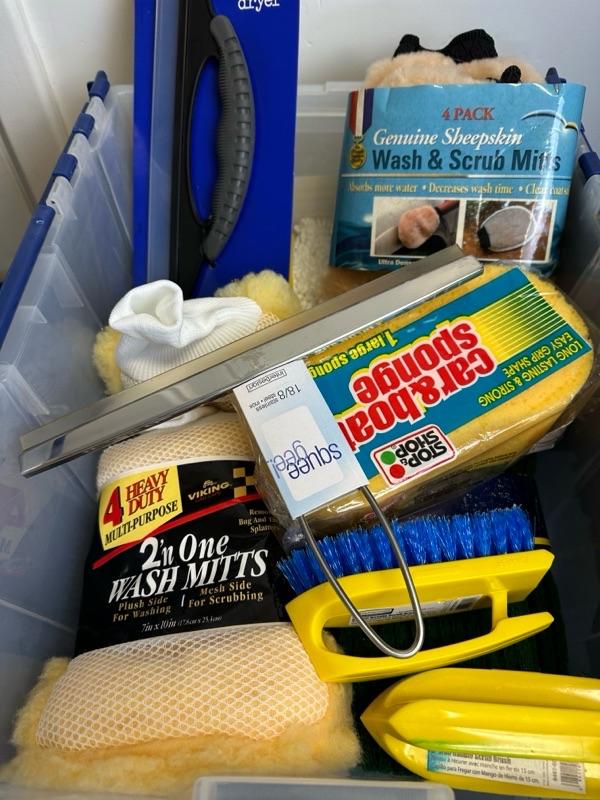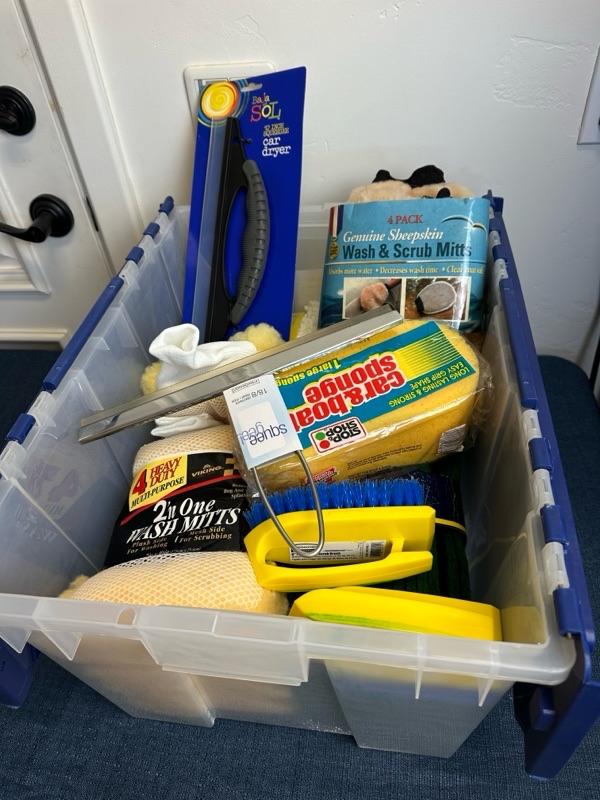 car wash gear and storage tub
