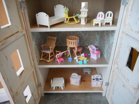Lot 711 - Child's Bulletin Board & a Dollhouse w/ some toys inside