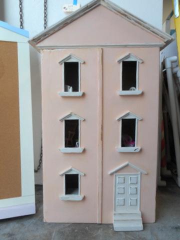 Dollhouse front doors swing open for play access and it is 39" tall x 24.5" across