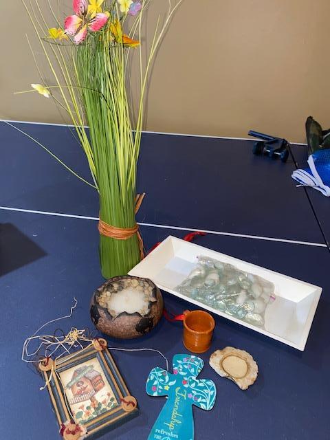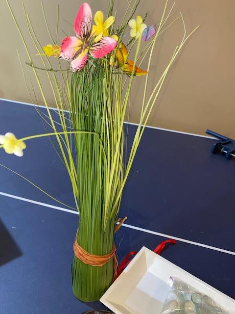 18" tall flowers, 12" wood tray