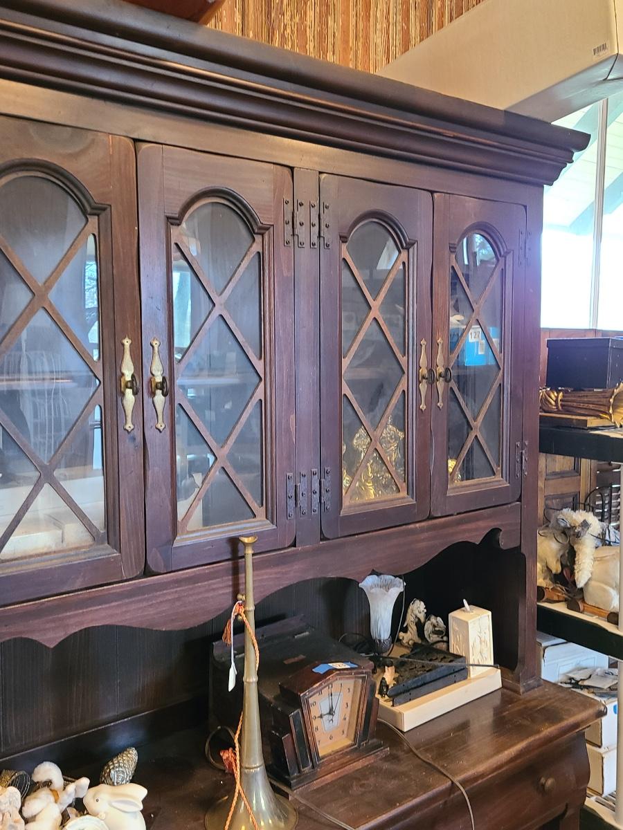 Lot 712: Large Wood Buffet with Glass Windows and Plenty of Storage
