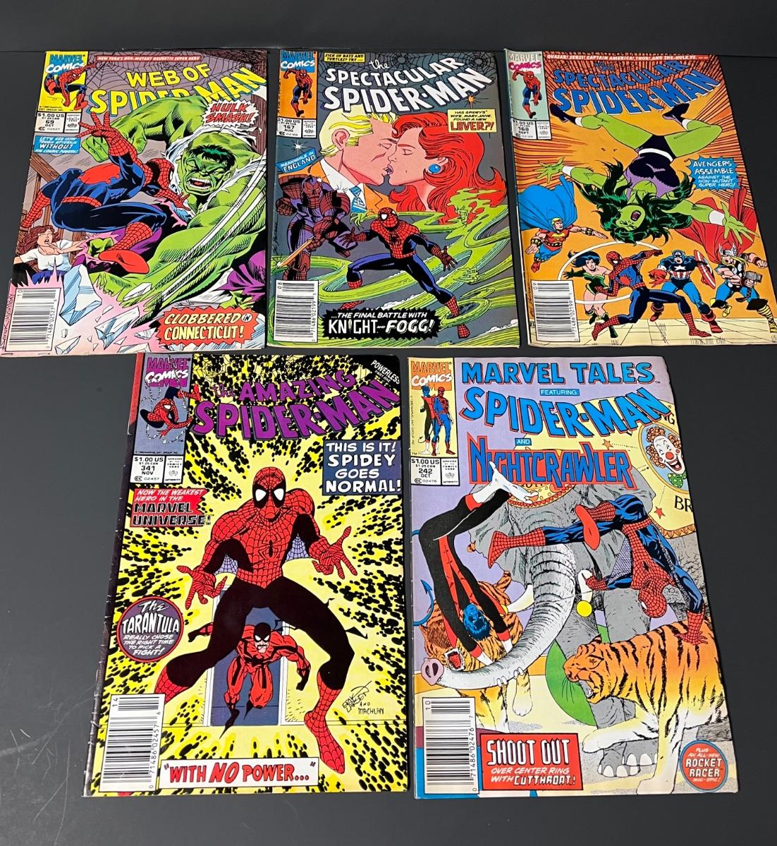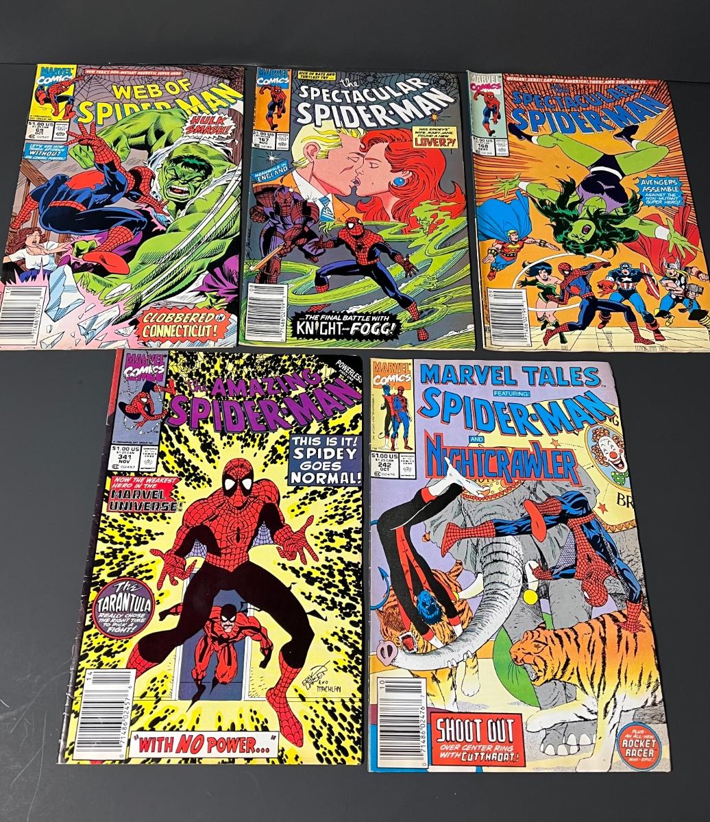 Five Spider-Man Comics - Various Issues. Please see all pictures as they are the best representation of the items. The pictures show condition, measurements if taken, and what is included in the lot. Due to the large amount that we photograph and the time frame, we are not always able to take measurements. All items unless noted, are pre-owned and have been used. If you purchased furniture, you must bring help. We do not allow one person to carry large furniture out on their own. Bring help, tools and a truck for the safety of our client’s homes, and your personal safety. Any damages that result to the property including walls, and floors due to moving of the furniture will be charged to the buyer. Company policy. Thank you.