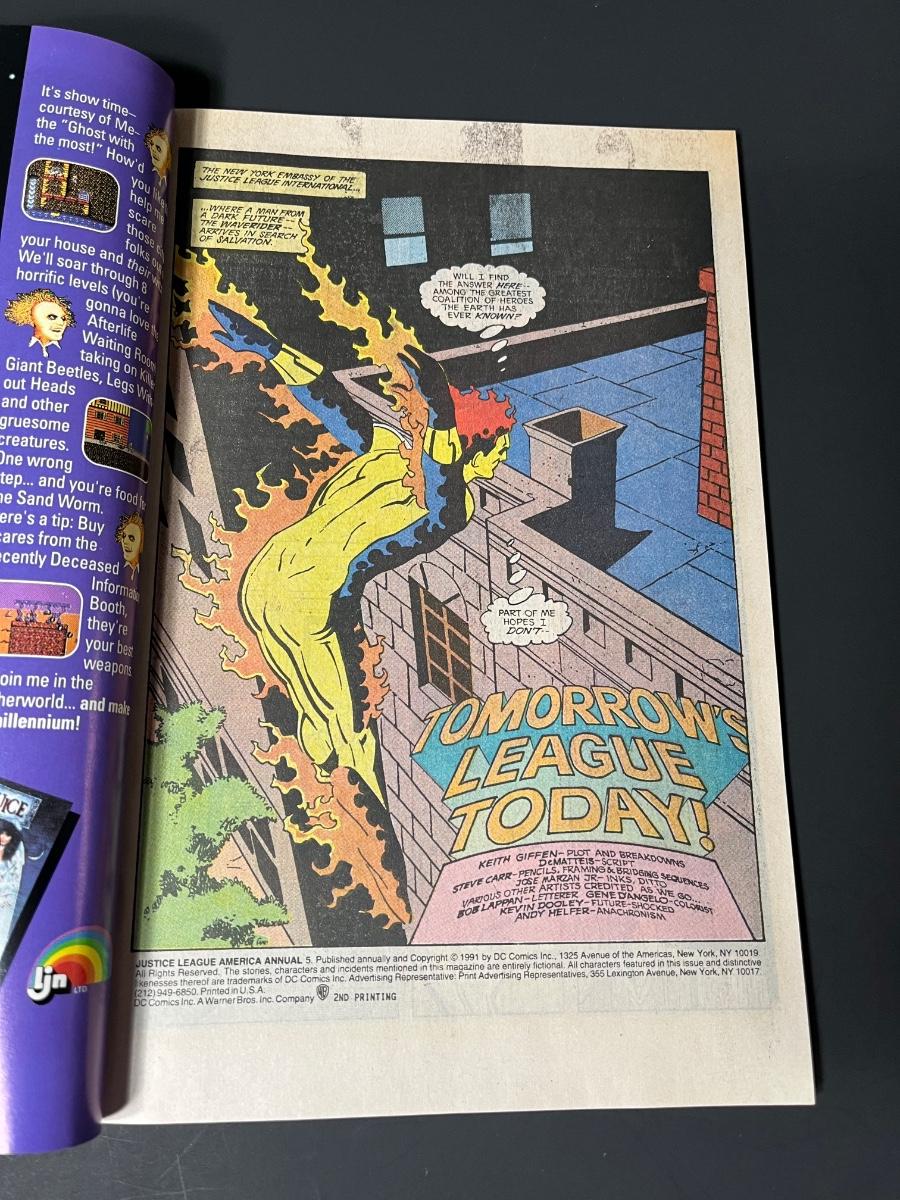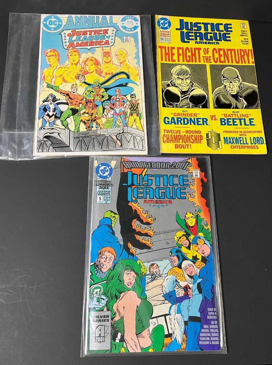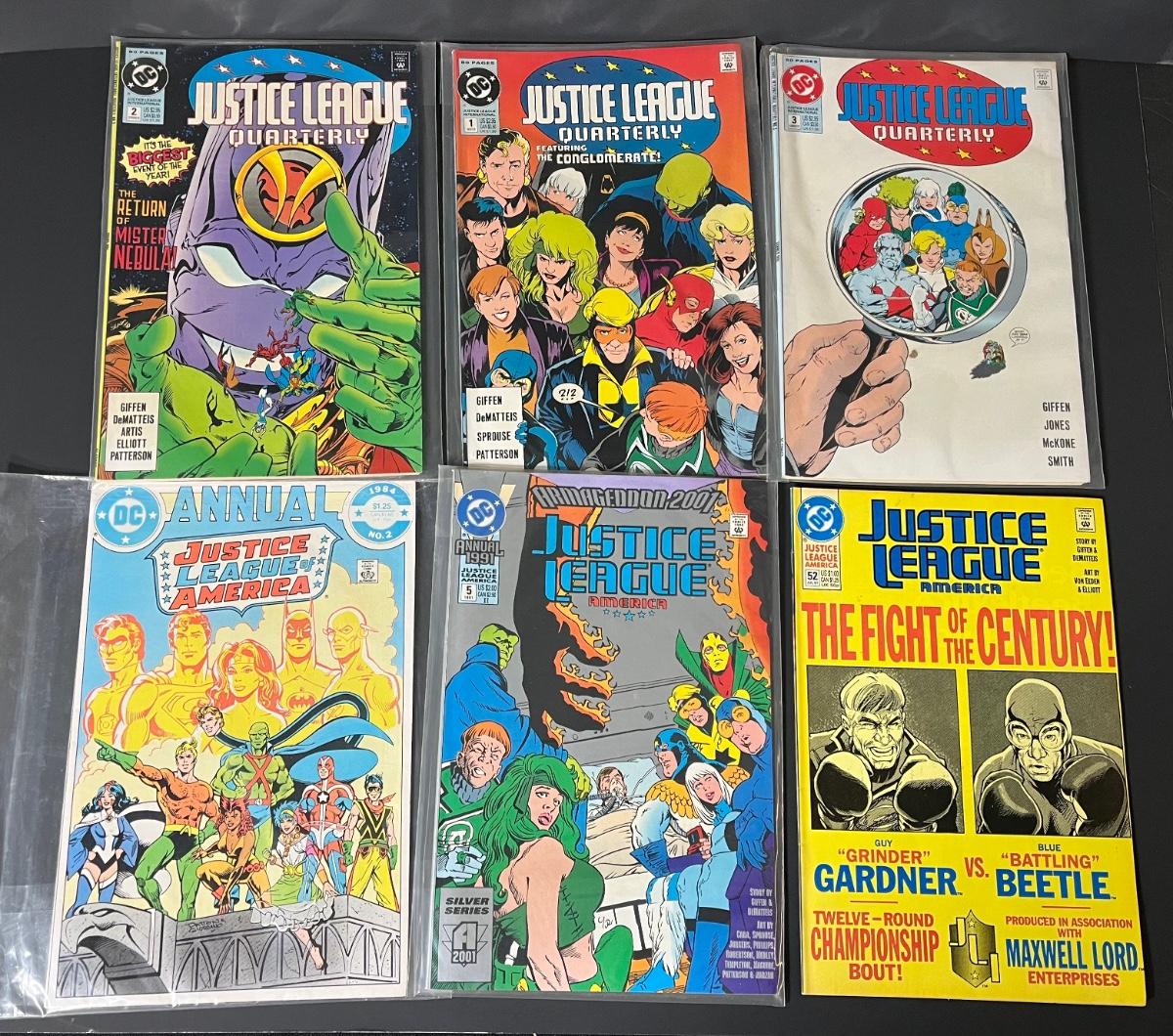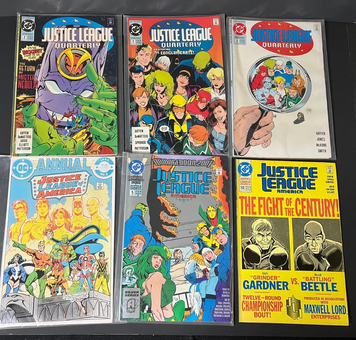 Six DC Justice League Comic Books. Please see all pictures as they are the best representation of the items. The pictures show condition, measurements if taken, and what is included in the lot. Due to the large amount that we photograph and the time frame, we are not always able to take measurements. All items unless noted, are pre-owned and have been used. If you purchased furniture, you must bring help. We do not allow one person to carry large furniture out on their own. Bring help, tools and a truck for the safety of our client’s homes, and your personal safety. Any damages that result to the property including walls, and floors due to moving of the furniture will be charged to the buyer. Company policy. Thank you.