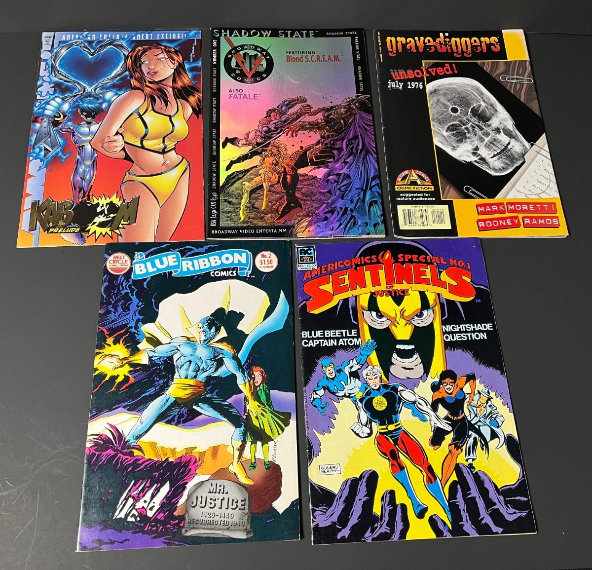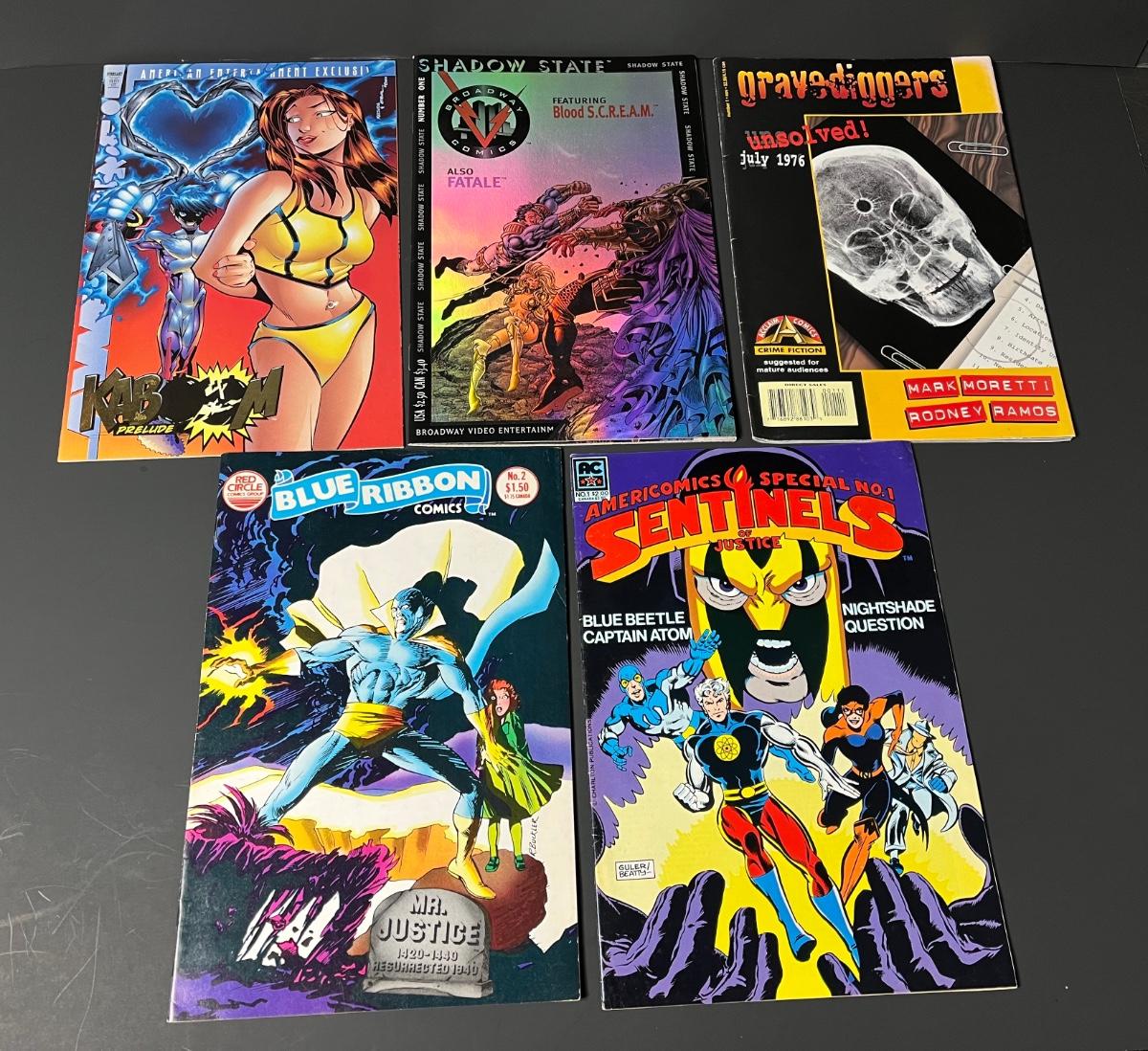 Five Assorted Comic Books. Please see all pictures as they are the best representation of the items. The pictures show condition, measurements if taken, and what is included in the lot. Due to the large amount that we photograph and the time frame, we are not always able to take measurements. All items unless noted, are pre-owned and have been used. If you purchased furniture, you must bring help. We do not allow one person to carry large furniture out on their own. Bring help, tools and a truck for the safety of our client’s homes, and your personal safety. Any damages that result to the property including walls, and floors due to moving of the furniture will be charged to the buyer. Company policy. Thank you.