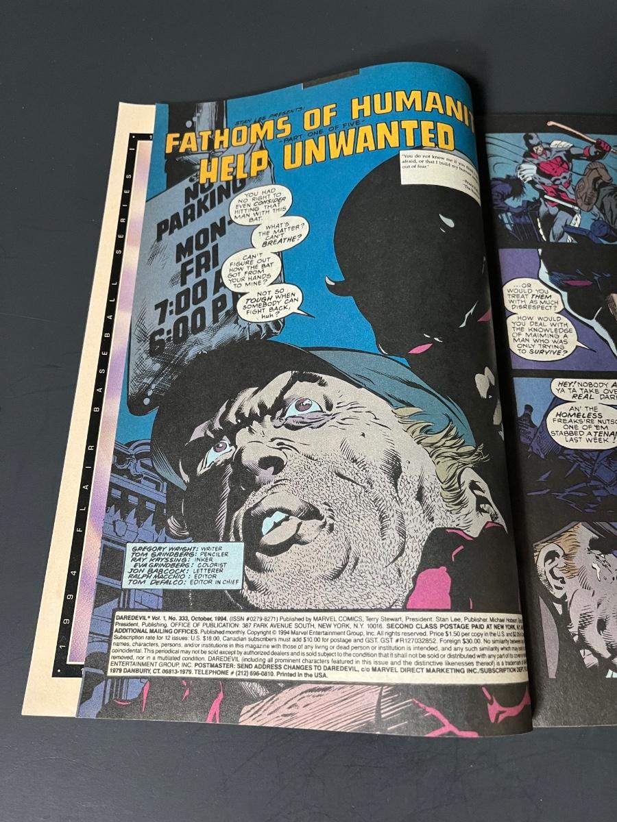 Six Daredevil Marvel Comic Books. Please see all pictures as they are the best representation of the items. The pictures show condition, measurements if taken, and what is included in the lot. Due to the large amount that we photograph and the time frame, we are not always able to take measurements. All items unless noted, are pre-owned and have been used. If you purchased furniture, you must bring help. We do not allow one person to carry large furniture out on their own. Bring help, tools and a truck for the safety of our client’s homes, and your personal safety. Any damages that result to the property including walls, and floors due to moving of the furniture will be charged to the buyer. Company policy. Thank you.