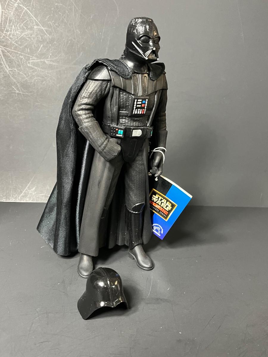 Star Wars Figures from Applause - 90s - Darth Vader, Boba Fett, Han Solo. Large figure approximately 14 inches, smaller are around 9. Please see all pictures as they are the best representation of the items. The pictures show condition, measurements if taken, and what is included in the lot. Due to the large amount that we photograph and the time frame, we are not always able to take measurements. All items unless noted, are pre-owned and have been used. If you purchased furniture, you must bring help. We do not allow one person to carry large furniture out on their own. Bring help, tools and a truck for the safety of our client’s homes, and your personal safety. Any damages that result to the property including walls, and floors due to moving of the furniture will be charged to the buyer. Company policy. Thank you.