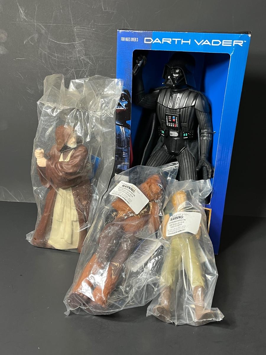 Star Wars Figures from the 90s by Applause - Vader, Chewbacca, Luke, Obi Wan. Large figure is approximately 14 inches and smaller are about 9-10. Please see all pictures as they are the best representation of the items. The pictures show condition, measurements if taken, and what is included in the lot. Due to the large amount that we photograph and the time frame, we are not always able to take measurements. All items unless noted, are pre-owned and have been used. If you purchased furniture, you must bring help. We do not allow one person to carry large furniture out on their own. Bring help, tools and a truck for the safety of our client’s homes, and your personal safety. Any damages that result to the property including walls, and floors due to moving of the furniture will be charged to the buyer. Company policy. Thank you.