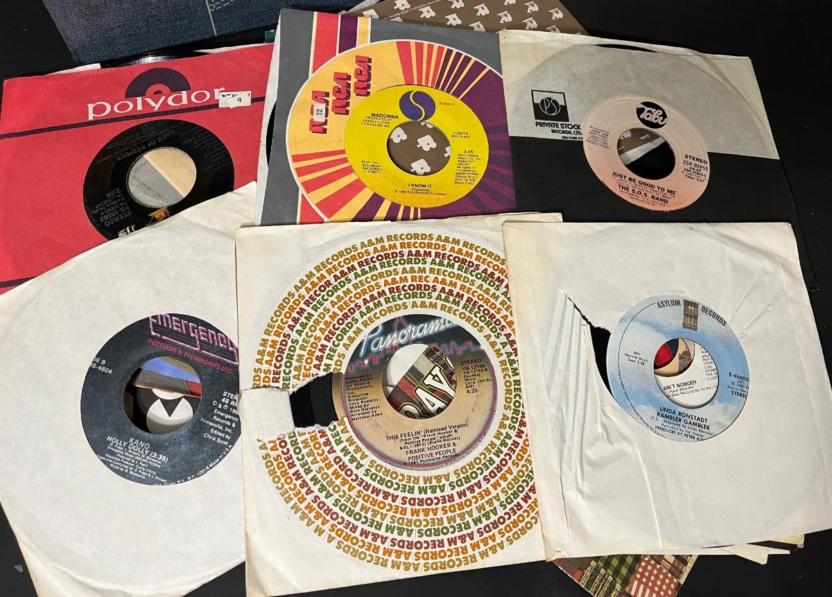 LOT 92: 40+ 45 RPM Singles in Vintage Case  - Lots of Disco